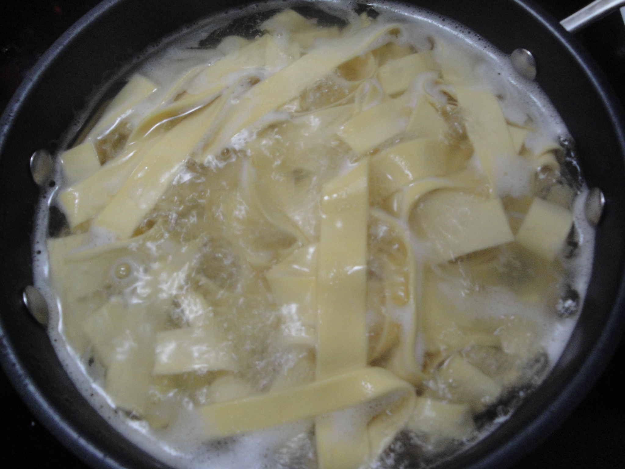 Cook the pappardelle according to package directions and drain, reserving the cooking liquid.