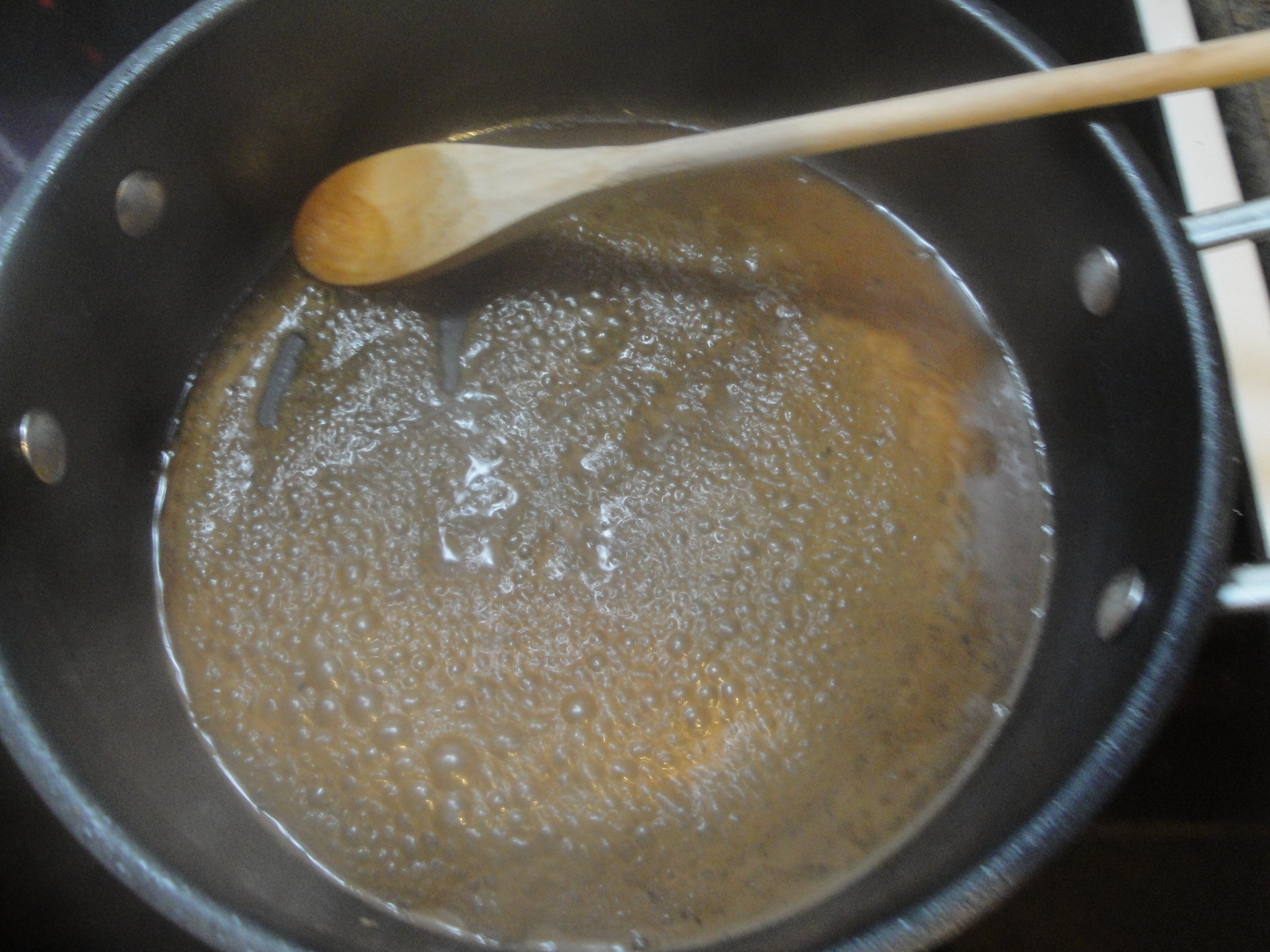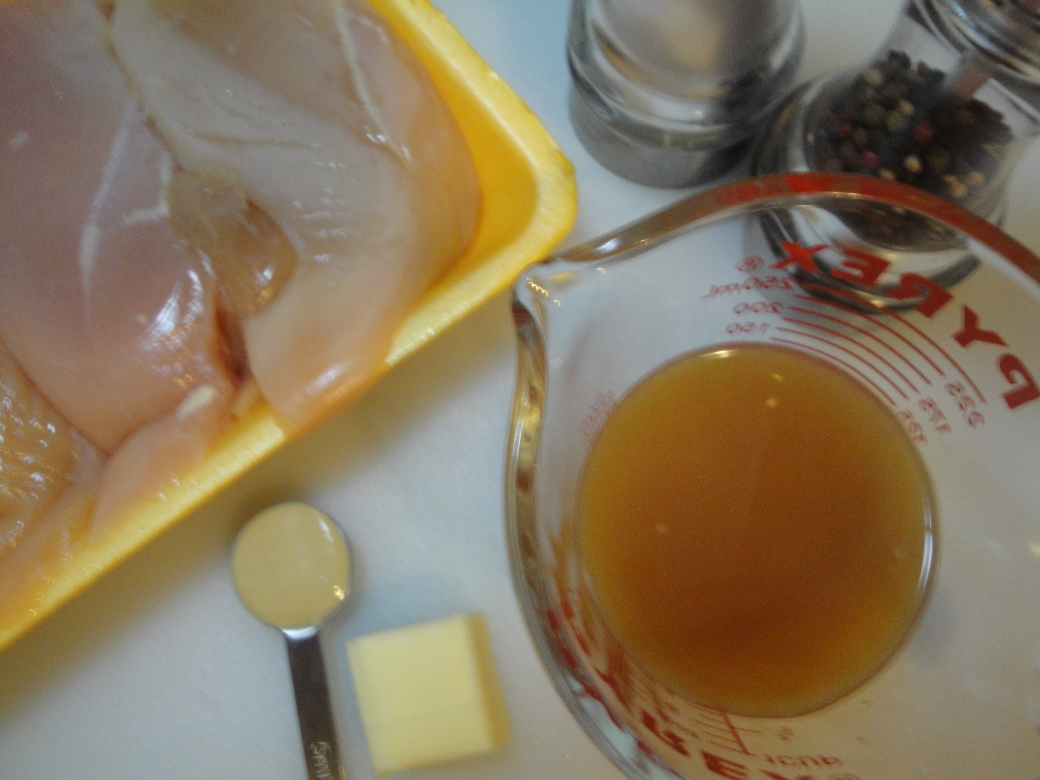 Remove the fully cooked chicken from the pan and set aside. Pour apple cider and dijon mustard into the hot pan. Stir together until slightly thickened.
