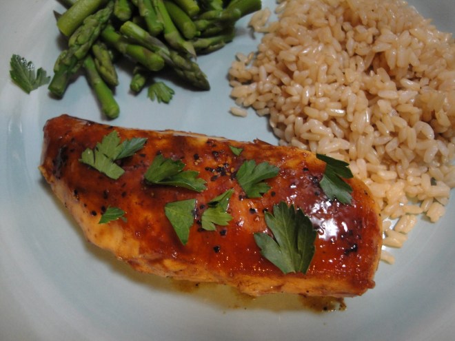 Another reason why I love October? Apple cider! When I saw my grocery store had stocked the produce cooler with the autumn beverage, I had to scoop some up. I knew that this recipe for Cider-Glazed Chicken was tucked away in my recipe book somewhere and I’d been waiting for just the right time to pull it out. Chicken breasts are browned in butter until fully cooked and then tossed in a simple glaze of apple cider and dijon mustard. So easy and so quick! The glaze gave the boring chicken breasts a tasty flavor with the subtle hint of apple without overpowering it. Whether you want to make this recipe or not, pick up some apple cider somewhere along your travels and do some cooking with it. Enjoy the burst of apple while you can!
