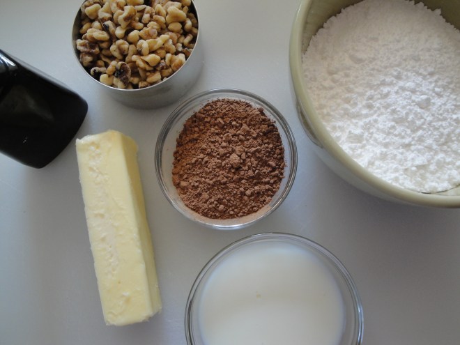 Stir in powdered sugar and vanilla. Add in walnuts.