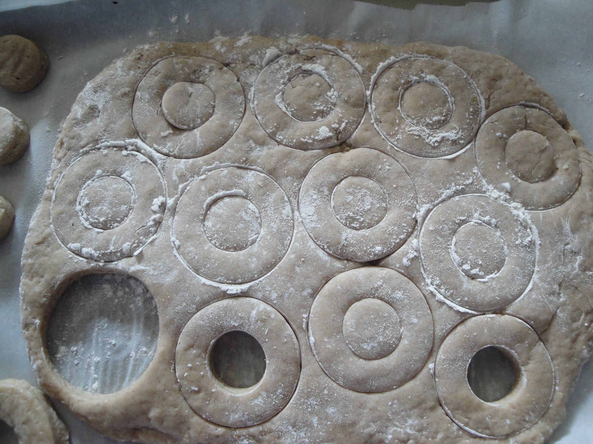 Pat dough onto a cookie sheet until 1/2 inch thick and refrigerate for at least 2 hours. Then cut chilled dough into rounds using a donut cutter or biscuit cutter.
