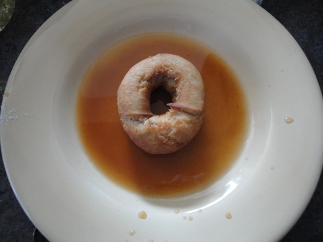 Heat vegetable oil in a pot until a thermometer reads 350ºF. Add doughnuts two or three at a time, flipping once until golden brown (I used a kitchen spider to flip them but a metal slotted spoon will work too).