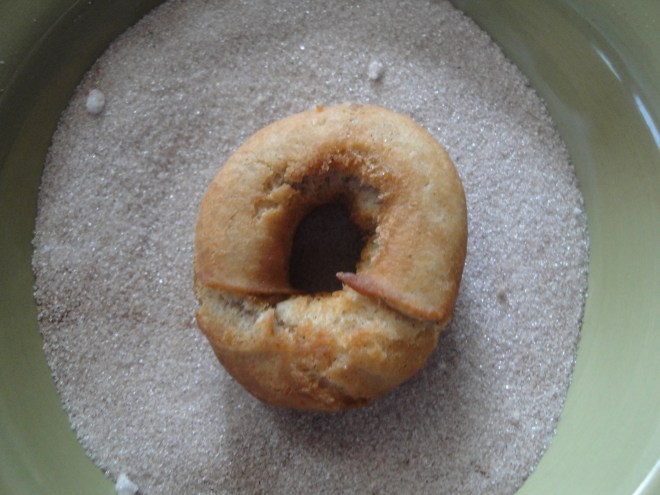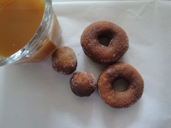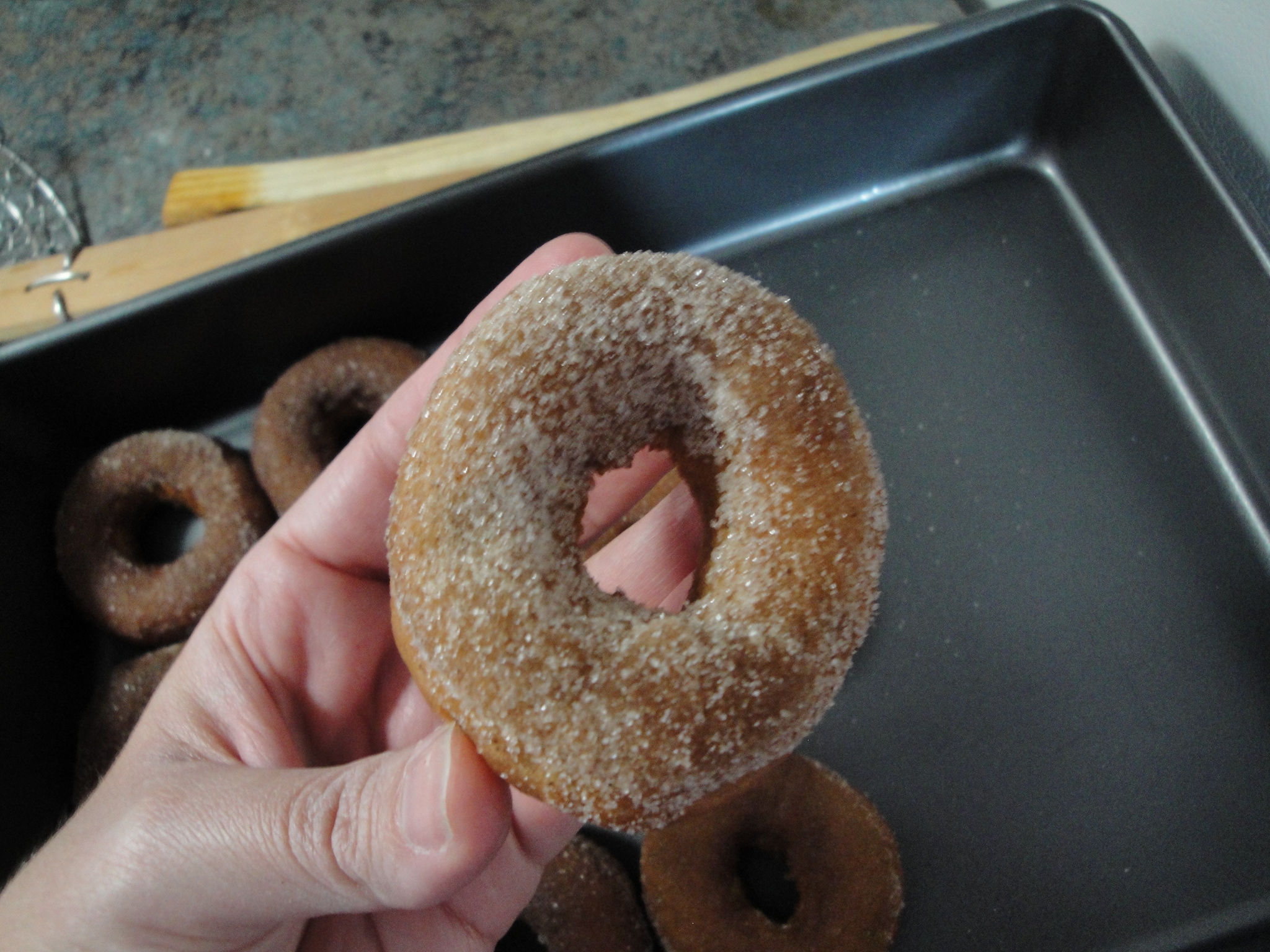 Place doughnuts on a paper towel to drain and when cool enough to handle, dip the top of the doughnuts into more reduced-apple cider and cinnamon-sugar.