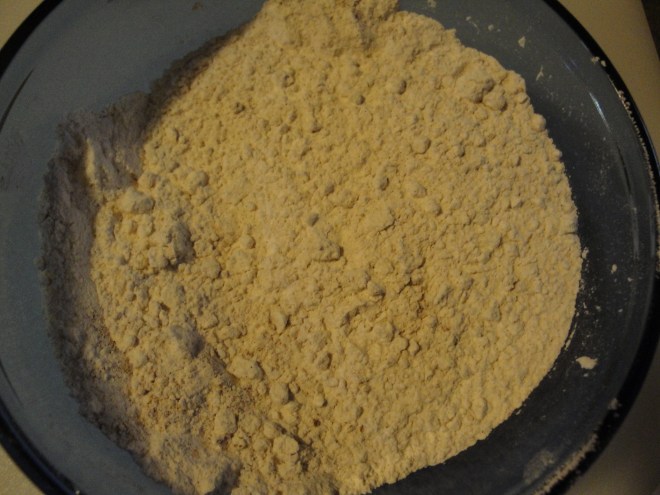 Combine flour, salt, baking powder, baking soda, cinnamon, and pumpkin pie spice in a bowl.
