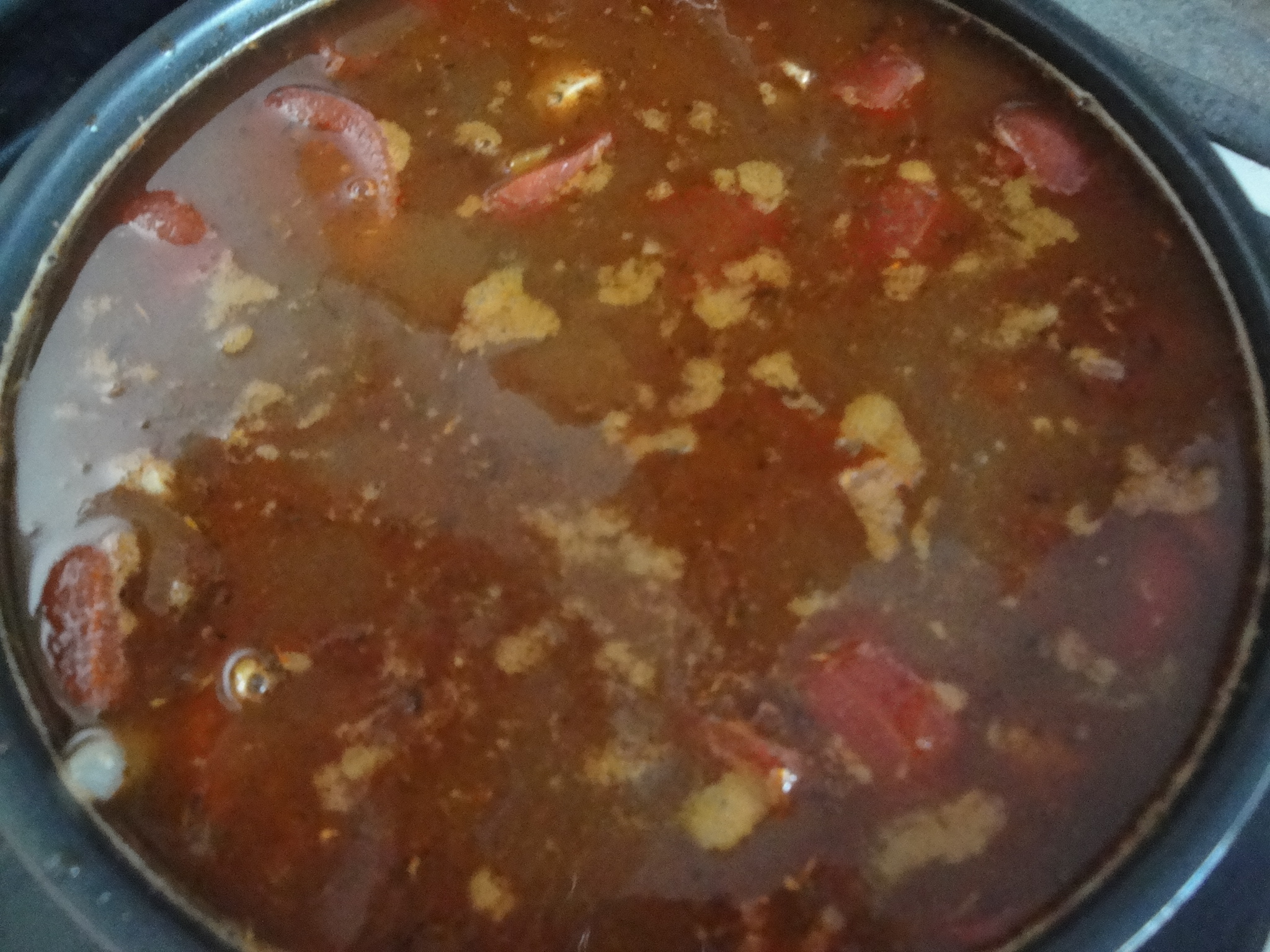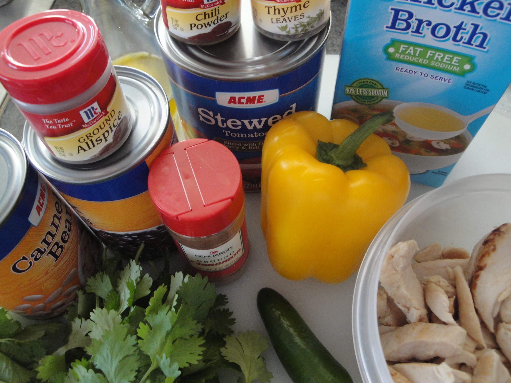 Heat onion and yellow pepper in olive oil until soft. Add in chili powder, thyme, allspice, and cinnamon and cook until fragrant.