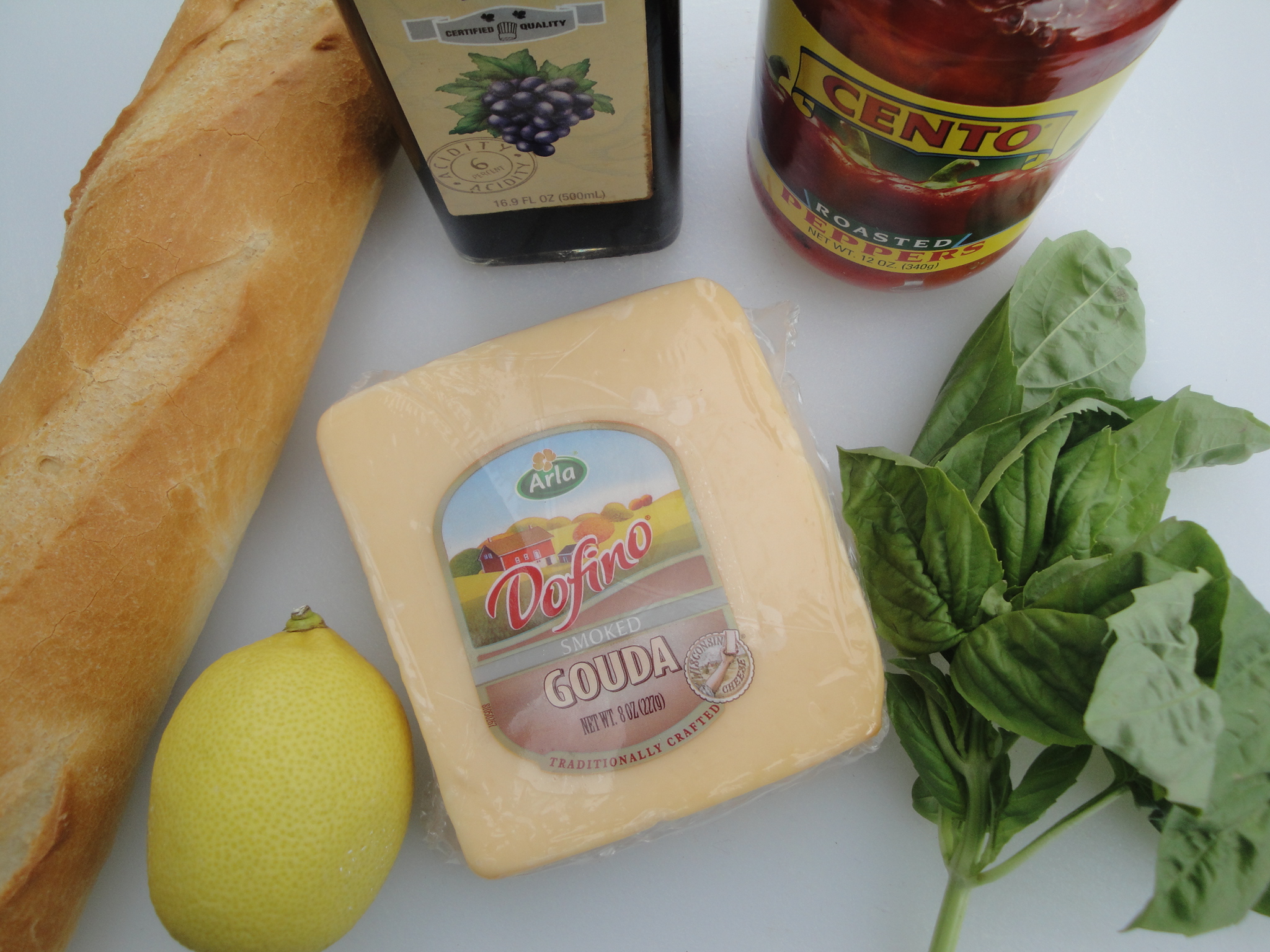 Roasted Red Pepper and Smoked Gouda Crostini (makes 12 appetizers):