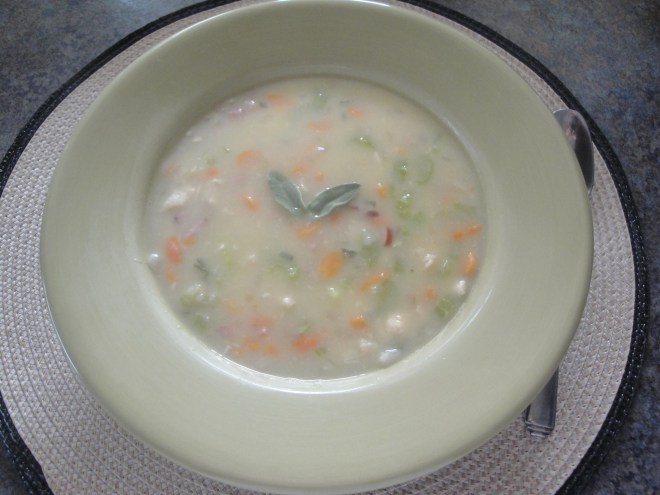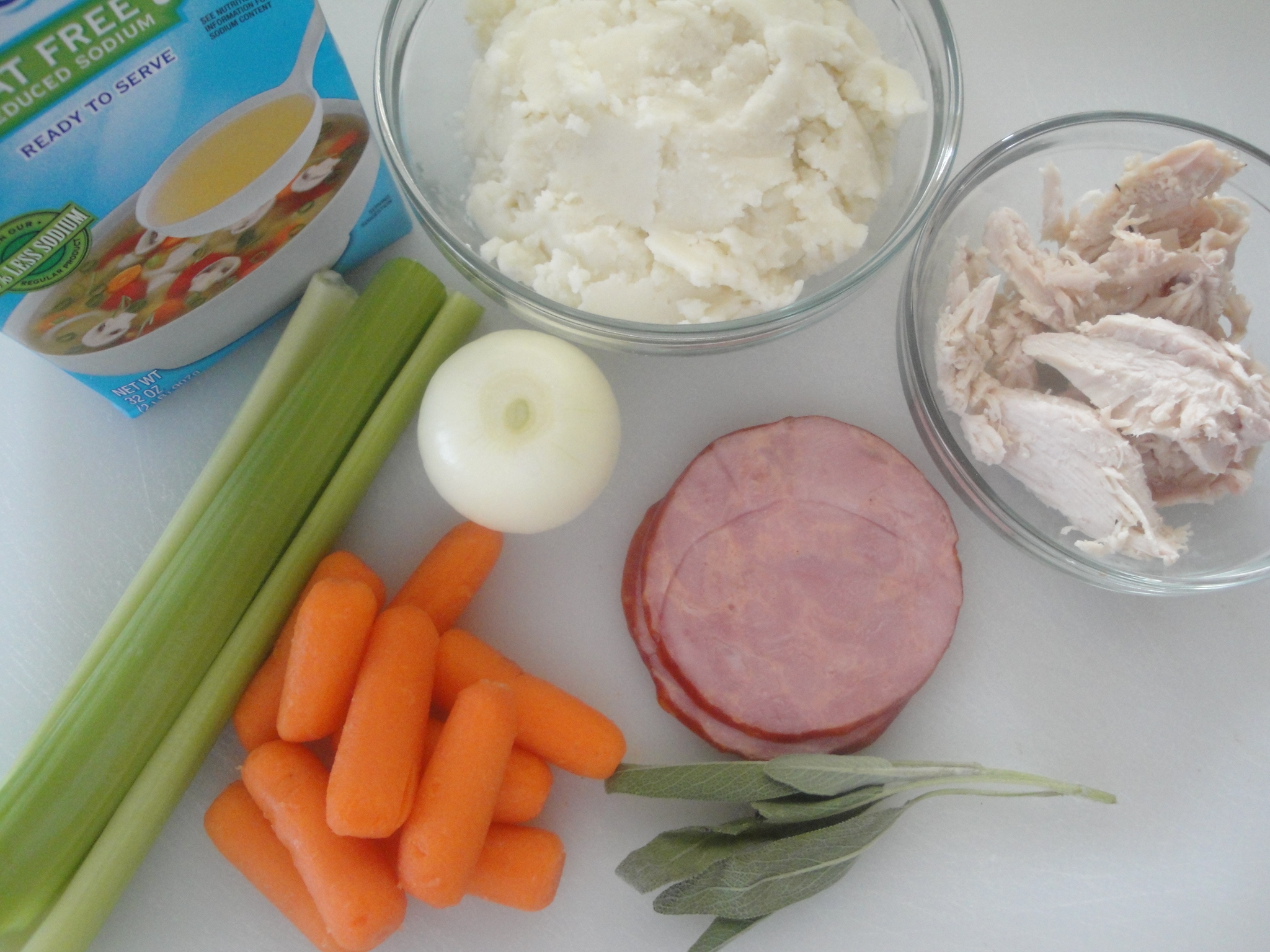 Thanksgiving leftovers used: turkey, mashed potatoes, celery, carrots, onions, broth, sage