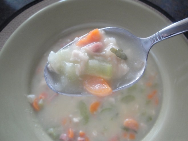 I hosted my first Thanksgiving ever last week and as a result ended up with plenty of leftovers in my fridge. My plan for this week is to take advantage of those leftovers and make some new meals with them. This first leftover recipe I made is Turkey and Potato Soup with Canadian Bacon. I just happened to have turkey Canadian bacon in my fridge after finding it in my local Whole Foods last week and it worked perfectly in this dish. The recipe calls for baking potatoes but I threw in the leftover prepared mashed potatoes I had which melted into this soup deliciously. This is a warm, creamy, hearty soup that somehow sucks me right back to my childhood. And that is a compliment.