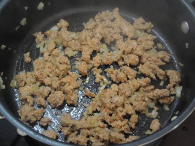 Cook onion and sausage in a skillet with the olive oil until sausage is fully cooked.