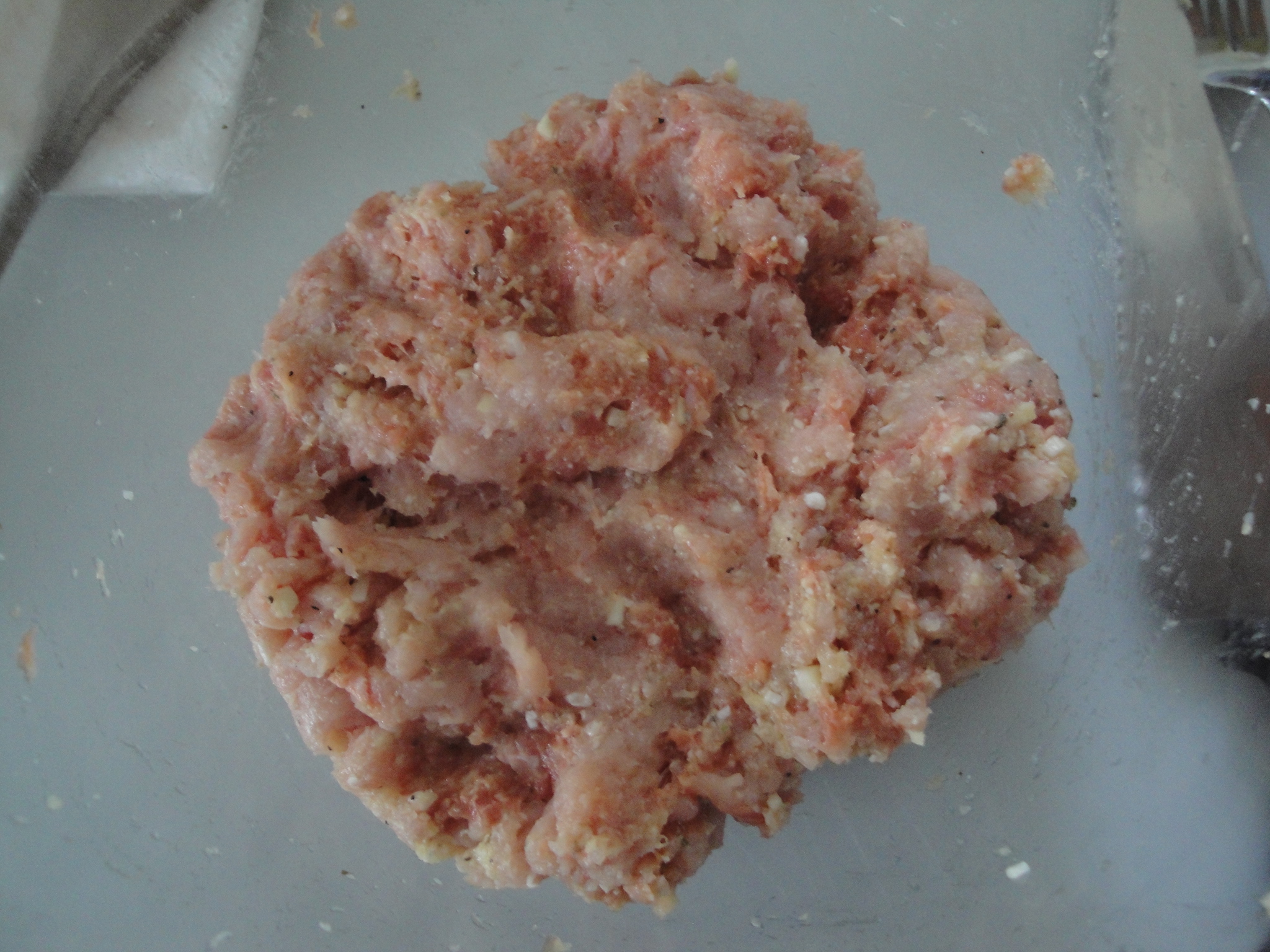 Add in ground turkey and sweet turkey sausage. Mix until just combined.