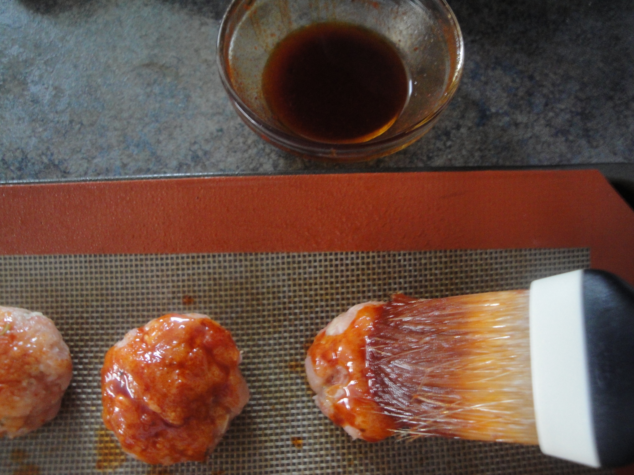 Roll mixture into balls and lay on a baking sheet. Combine olive oil and smoked paprika and brush on each meatball. Bake at 400°F for 25 minutes.