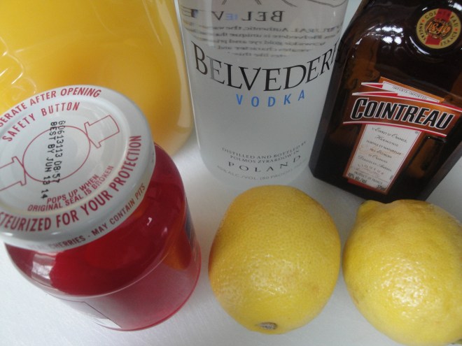 It’s only two days until Christmas – how did that happen? There are no hints of cookies left in my house as I shipped most of them away to family and took the rest in to my coworkers. So, I don’t have a cookie recipe for you today but instead have a festive little cocktail, Jingle Juice. This drink has orange juice, lemon juice, vodka, orange liqueur, and cherry juice and packs a punch! My lips puckered a bit when I first tried this because it’s pretty acidic so if I make this again, I’ll swap out some of the orange juice for sparkling water. Substituting lemon-lime soda for the vodka and orange liqueur would make this a fun mocktail for any kiddos running around also so if you need something festive for a Holiday party, a weekend get-together or just for sitting by the fire watching Home Alone (again), check this out!