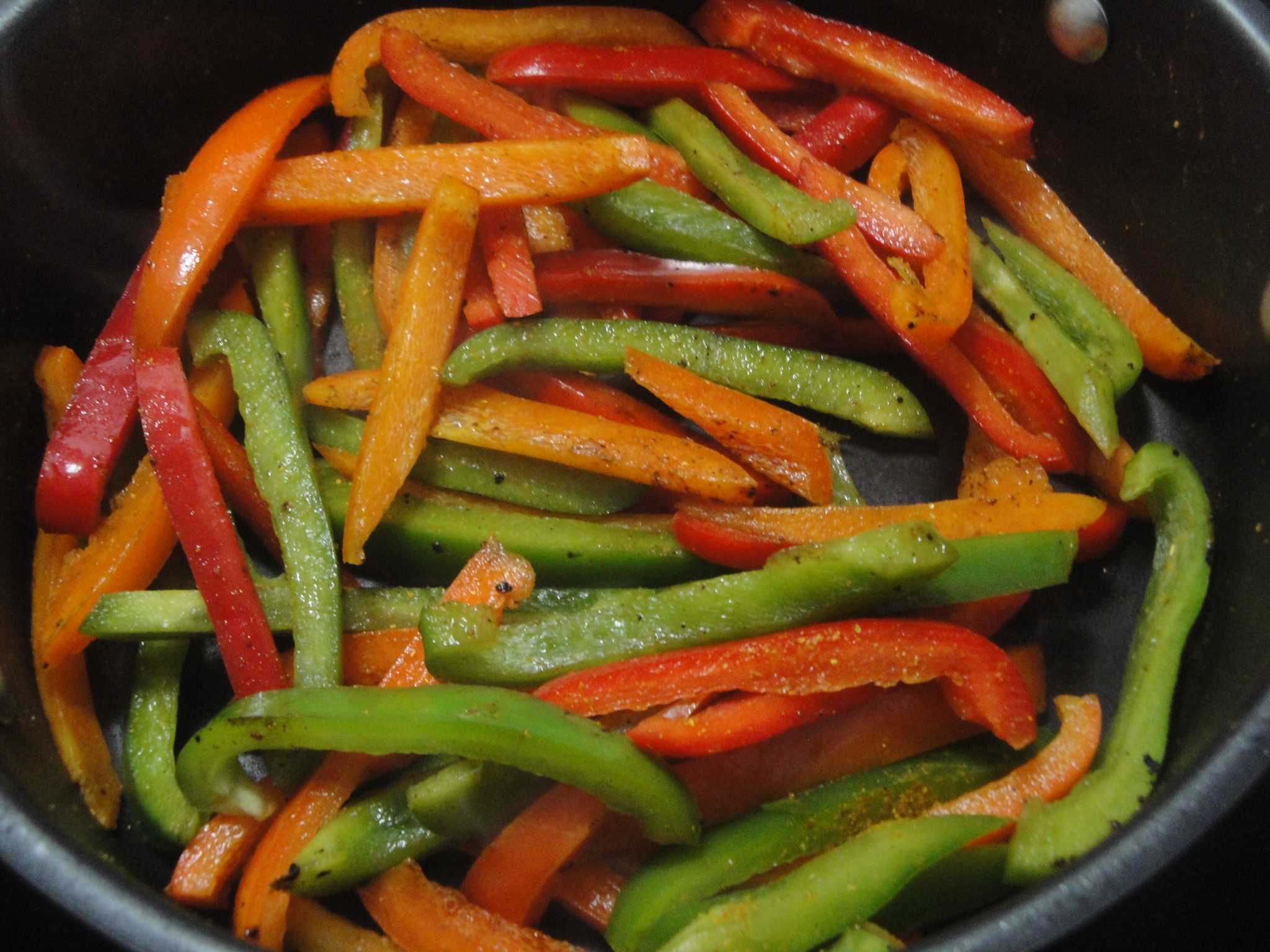 Remove chicken from the pan and set aside. In the same pan, sauté bell peppers and curry powder for 1 minute.
