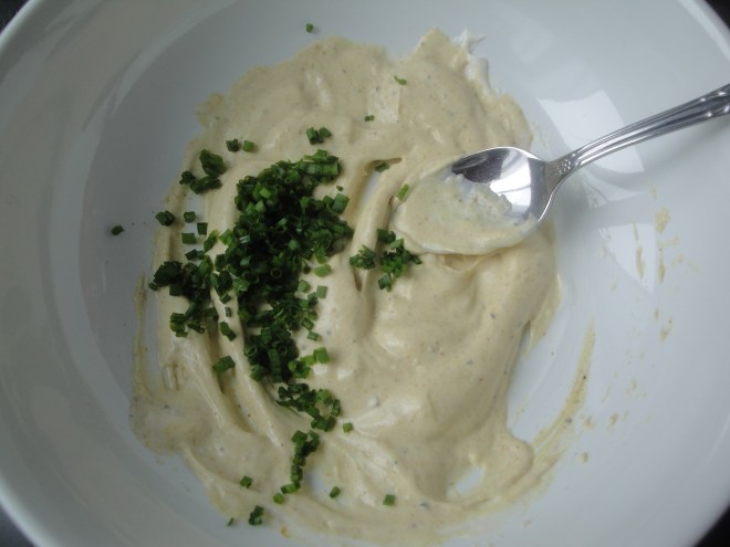 Add in onion, celery, and chives (I omitted the onion and celery).