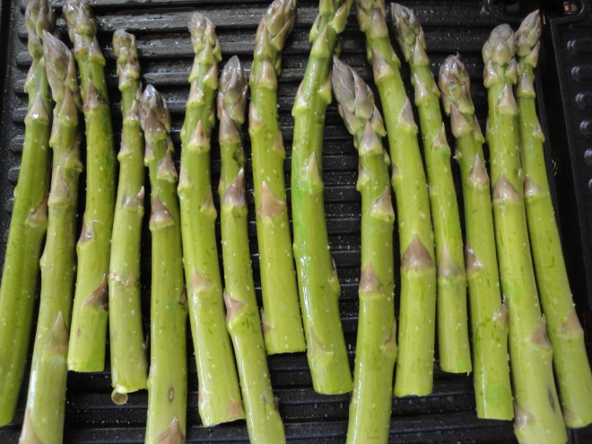 Place asparagus on grill rack coated with cooking spray and heated over medium-high heat. Grill for 4 minutes or until crisp-tender, turning after 2 minutes.