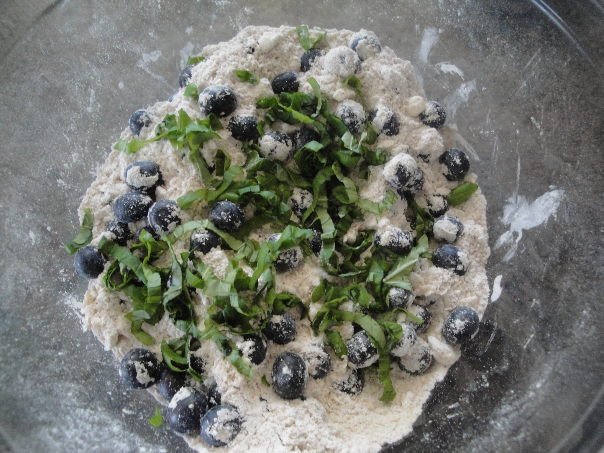 Blueberries are ridiculously delicious right now so I keep buying packages of them each time I’m at the store or produce market. Wanting something a little more interesting than plain old blueberry scones, I decided to use up the last of some of my basil and make Blueberry-Basil Scones. It may sound like an odd combination but they are both fresh, vibrant flavors that just so happen to complement one another. These scones also have a bit of lemon zest as well, adding to the brightness of these scones. Eat these toasted with a little bit of butter or jam or just eat them plain and enjoy how the blueberries pop so perfectly in every bite.