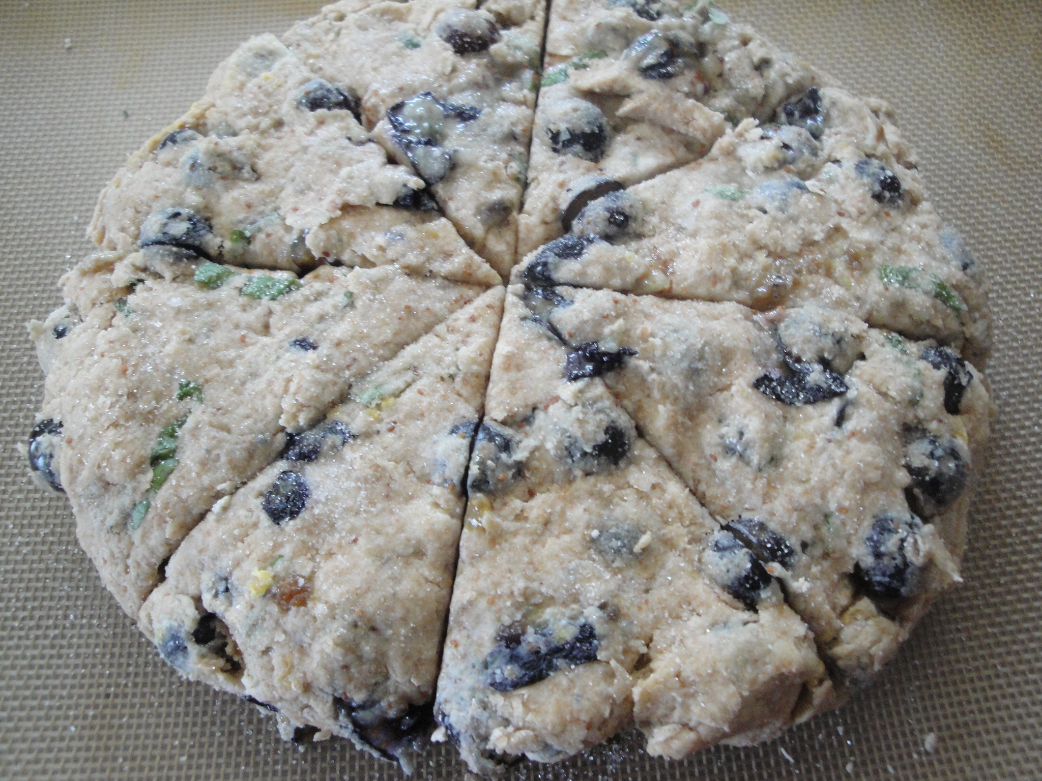 Turn dough out onto a lightly floured surface, and carefully knead a few times (do not overknead). Shape dough into an 8-inch circle and place on the baking sheet. Cut dough into 8 wedges, cutting into, but not through, the dough.