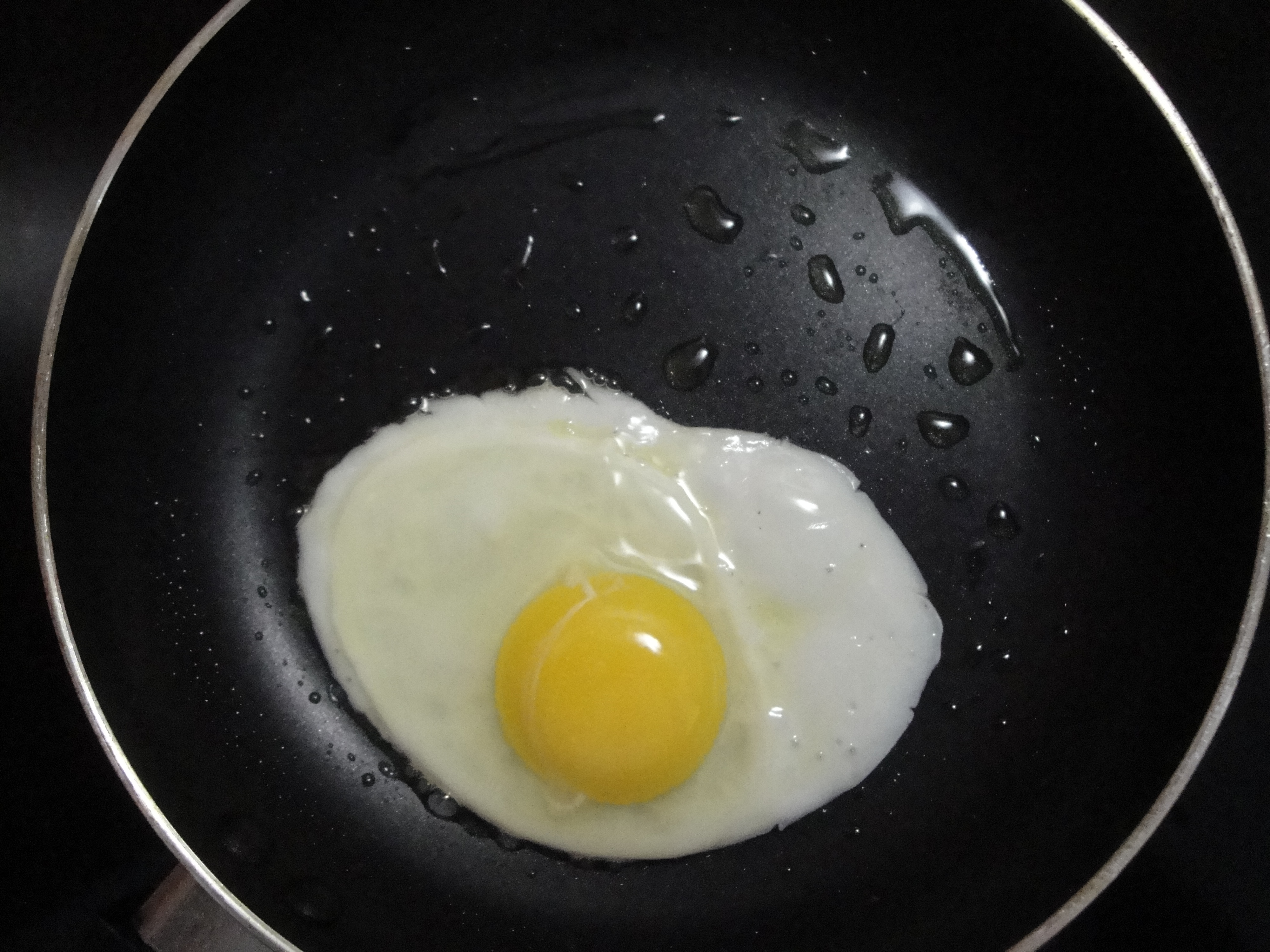 Prepare bacon according to package directions.  Meanwhile, heat olive oil in a nonstick skillet over medium heat and swirl to coat.  Crack eggs into the pan and cook for 2 minutes.  Cover and cook an additional 2 minutes or until whites are set.