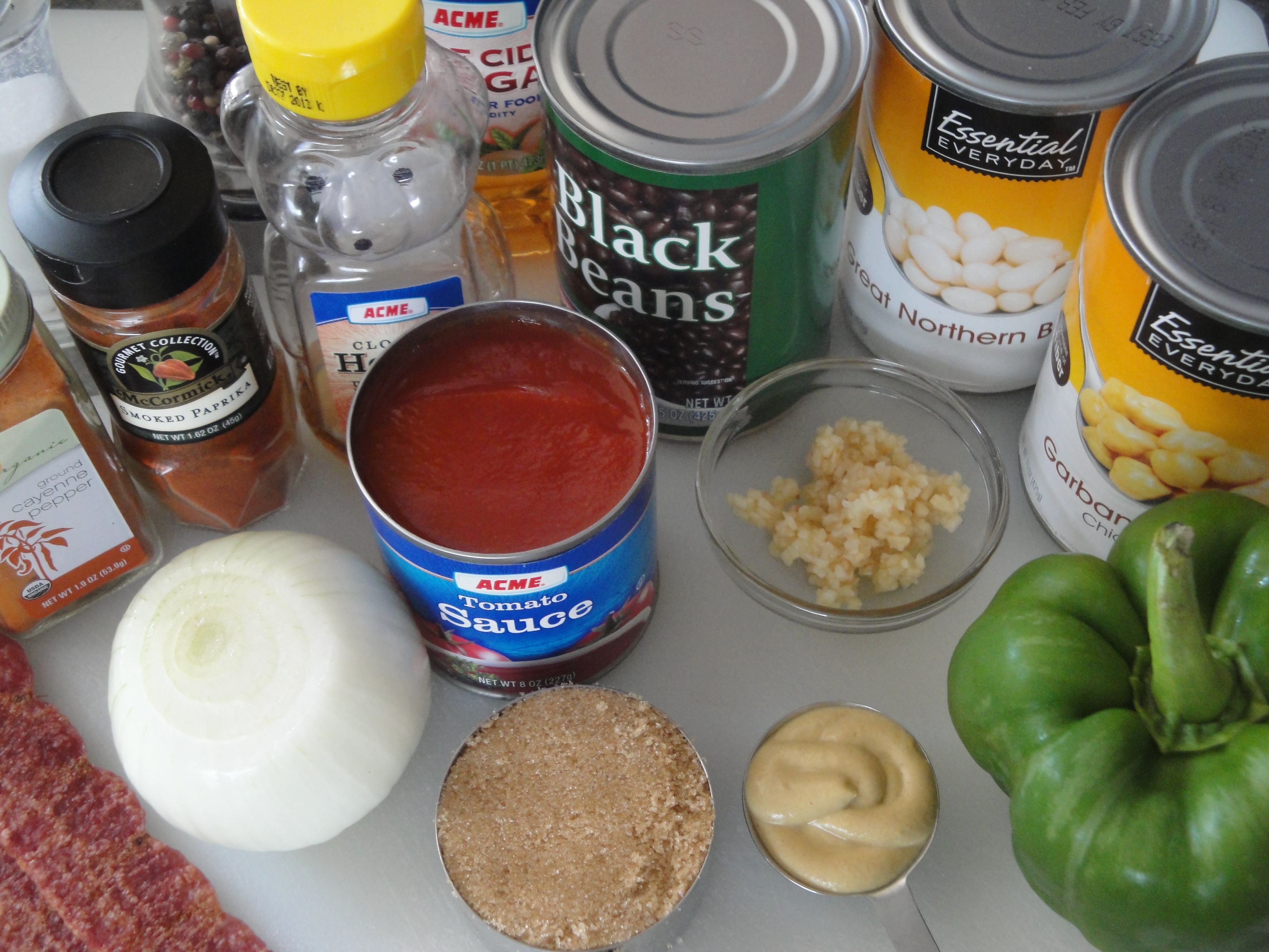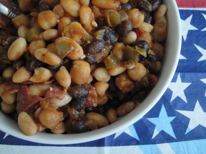 Black beans, chickpeas and Great Northern beans are mixed with peppers, onions and garlic before being mixed with a magical concoction of tomato sauce, brown sugar, Dijon mustard, honey and cider vinegar. Vibrant flavors of cayenne pepper and smoked paprika (my two favorites) spice up the dish, giving it all the personality in the world. The whole dish is topped with chopped bacon (of course, I used turkey bacon) just to give it yet another burst of flavor but leave it out to easily make this vegetarian. I accidentally forgot to put in the honey but I think it was sweet enough as it was so leave it out if you like. Although it may take a little bit of time to make this, it’s so much better than what comes in a can. Take this to a cook-out, potluck, picnic or any summertime party and revel in how much people are impressed by what you made. Canned baked beans don’t stand a chance against this.