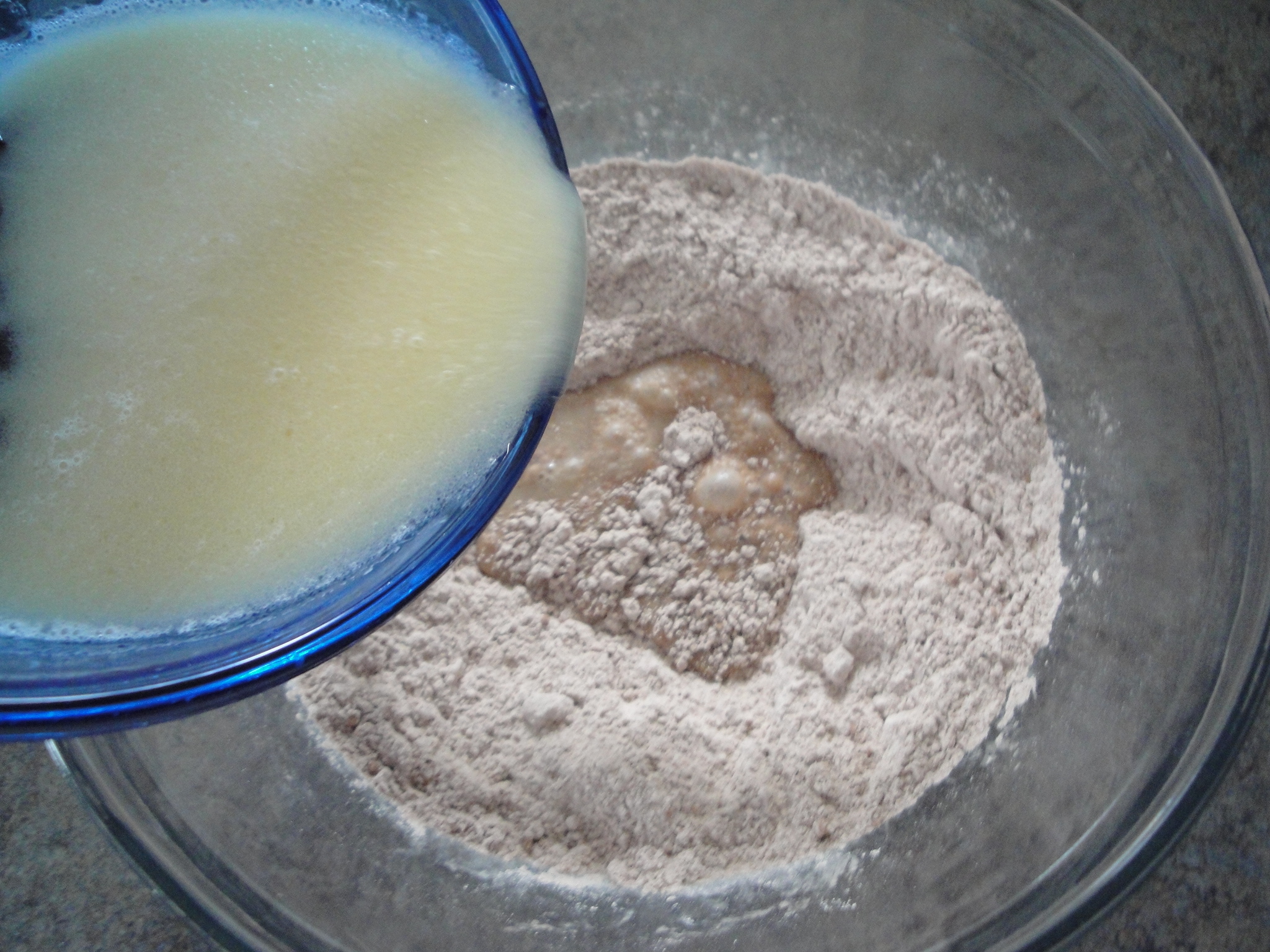 Combine flour, brown sugar, baking powder, baking soda and salt in a large bowl, stirring with a whisk. Make a well in center of mixture.