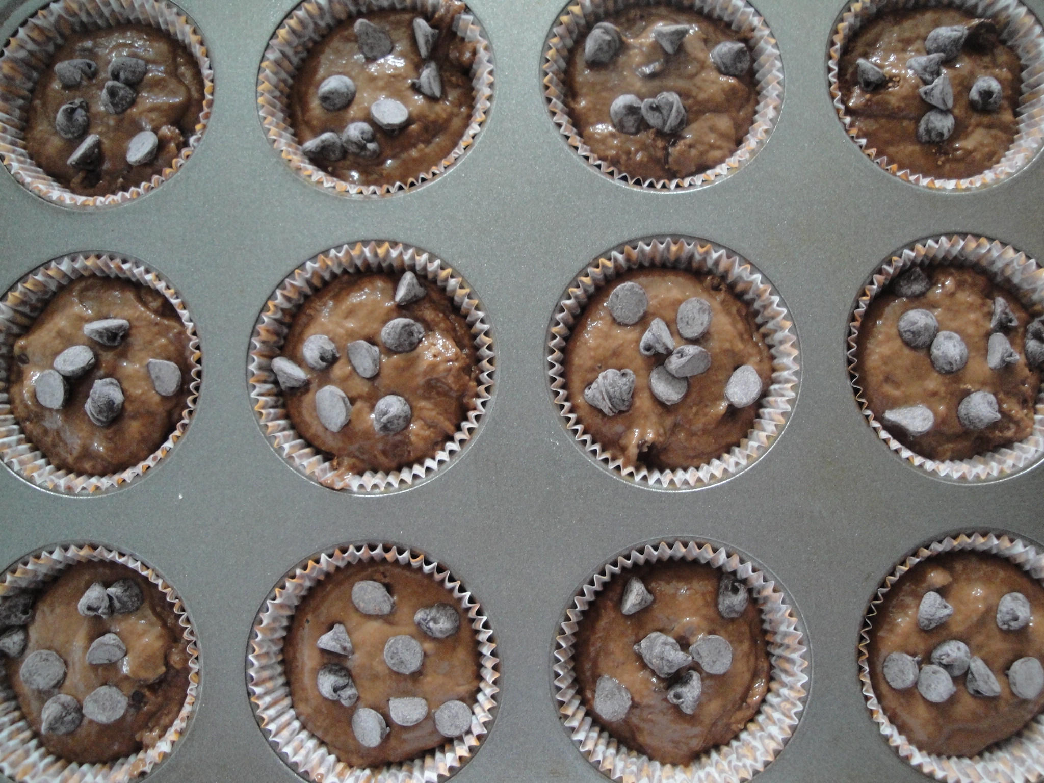 Coat 12 muffin liners with cooking spray and divide batter evenly among muffin cups. Top remaining chocolate chips evenly over batter.