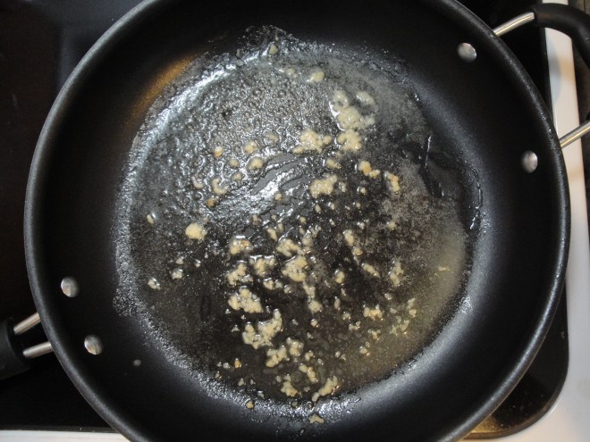 Melt butter in a skillet and add minced garlic, sautéing for 30 seconds.