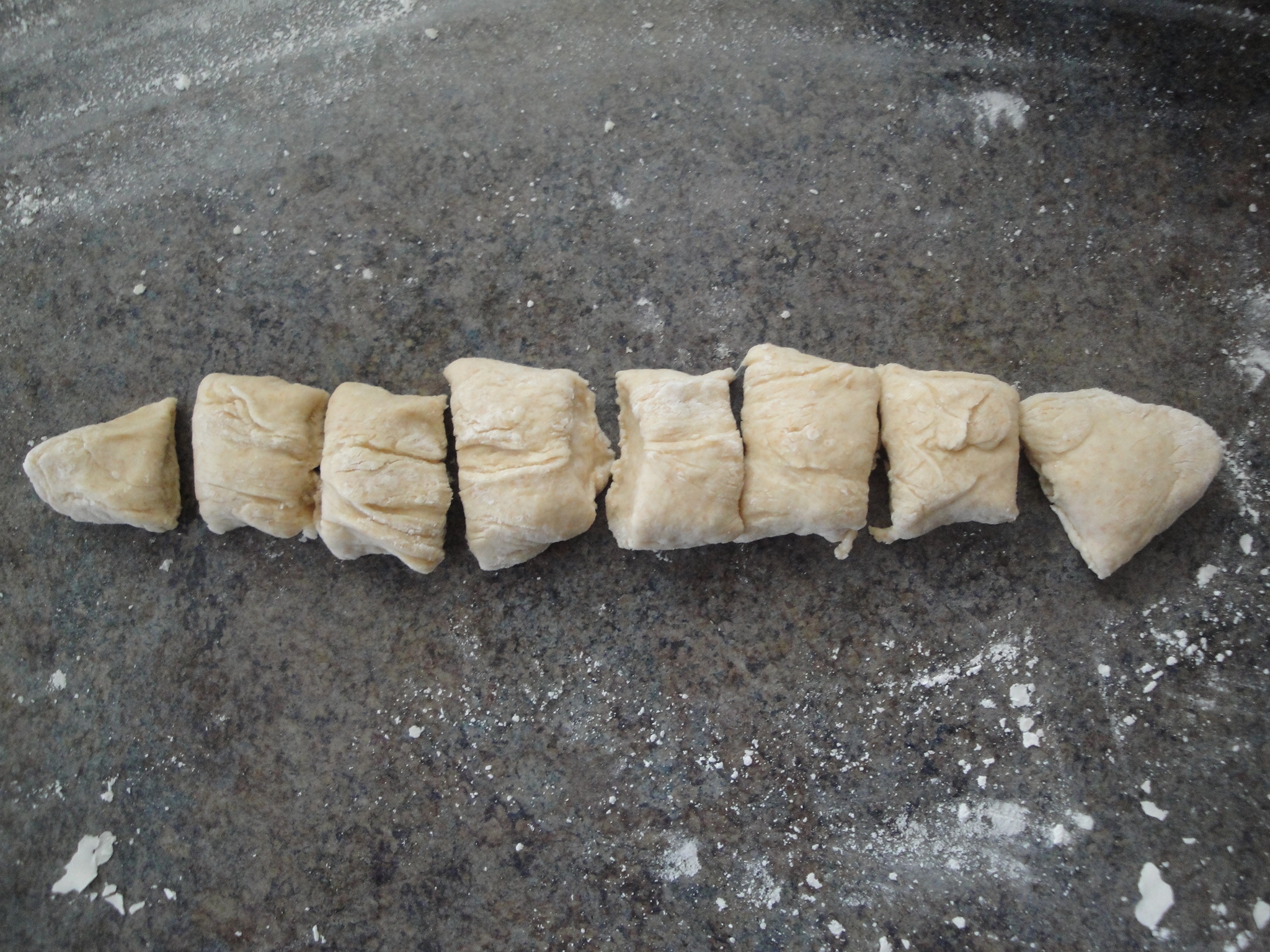 Punch dough down; divide into 8 equal portions. Working with one portion at a time (cover remaining dough to prevent drying), roll into an 8-inch rope. Cut each dough rope into 8 equal pieces, shaping each piece into a 1-inch ball.