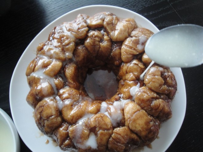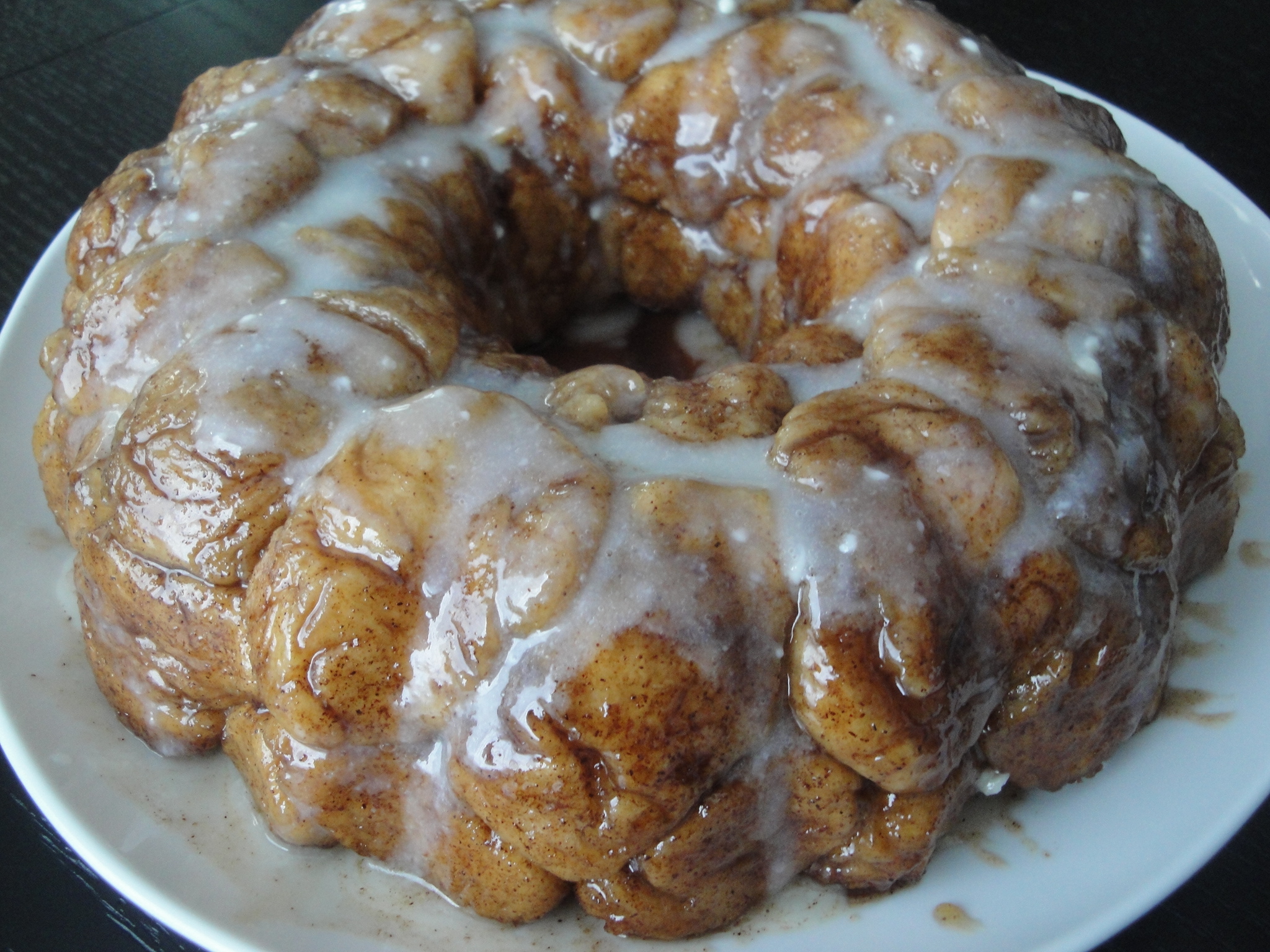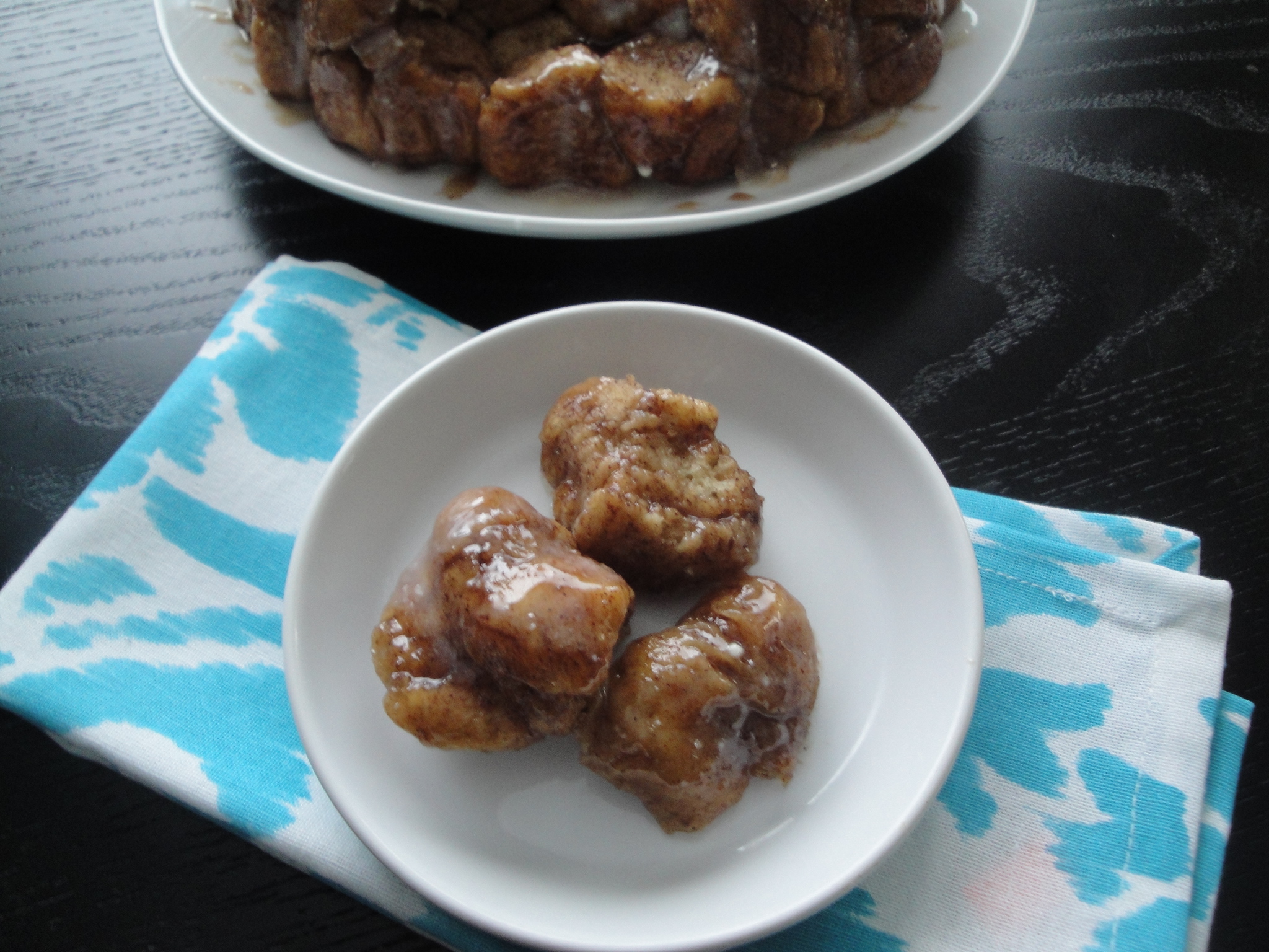 One morning last week, I was on the train enduring my daily commute into the city for my job and like usual I was listening to my favorite morning radio show, The Preston & Steve Show. On that particular day, they started talking about Cinnabon’s ooey, gooey, buttery cinnamon buns which morphed into a conversation about yummy, sweet, sticky Monkey Bread. By the time I got off the train and walked the six blocks to work, my mouth was watering and my stomach was growling. Thankfully, there wasn’t a Cinnabon nearby (at least if there is, I don’t want to know about it!) but the seed had already been planted and the damage had already been done – at any given moment after that, my brain would automatically turn to cinnamon buns, brown sugar and cinnamon, or anything cinnamony with a cool, drippy icing. It was all I could think about. I hope that explains why I made this Monkey Bread.