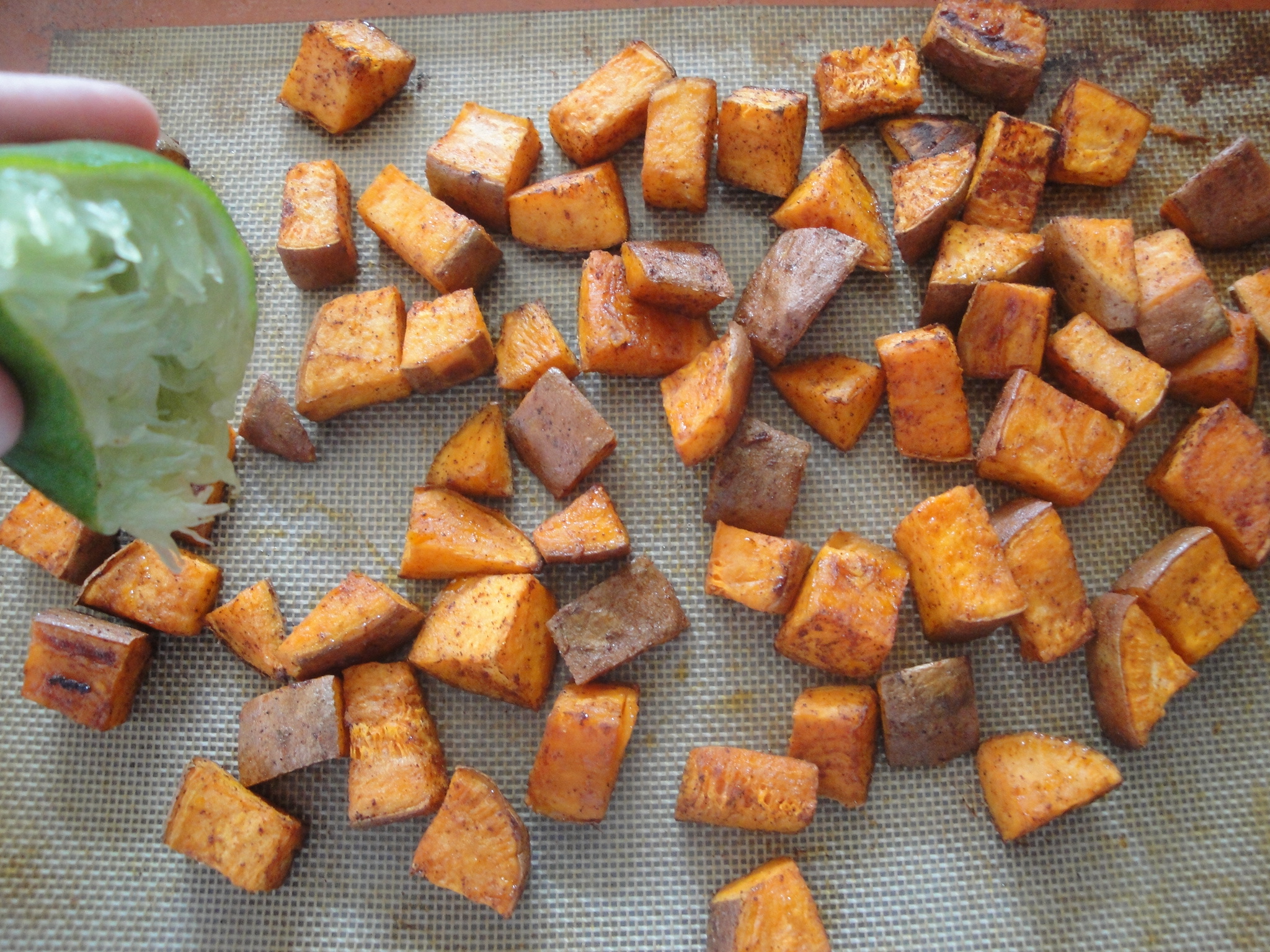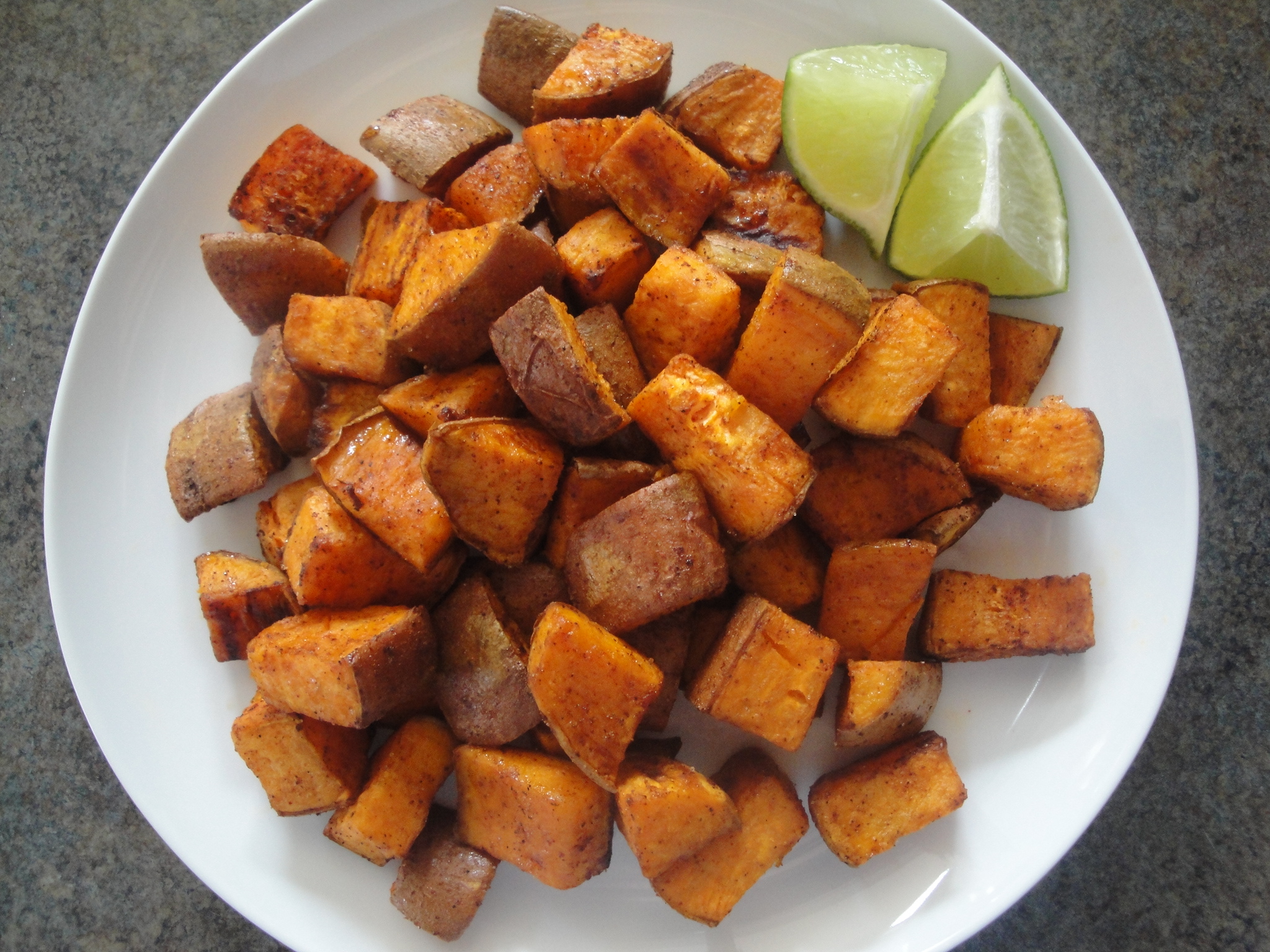 Roasted Chipotle-Lime Sweet Potatoes (makes 4 servings)