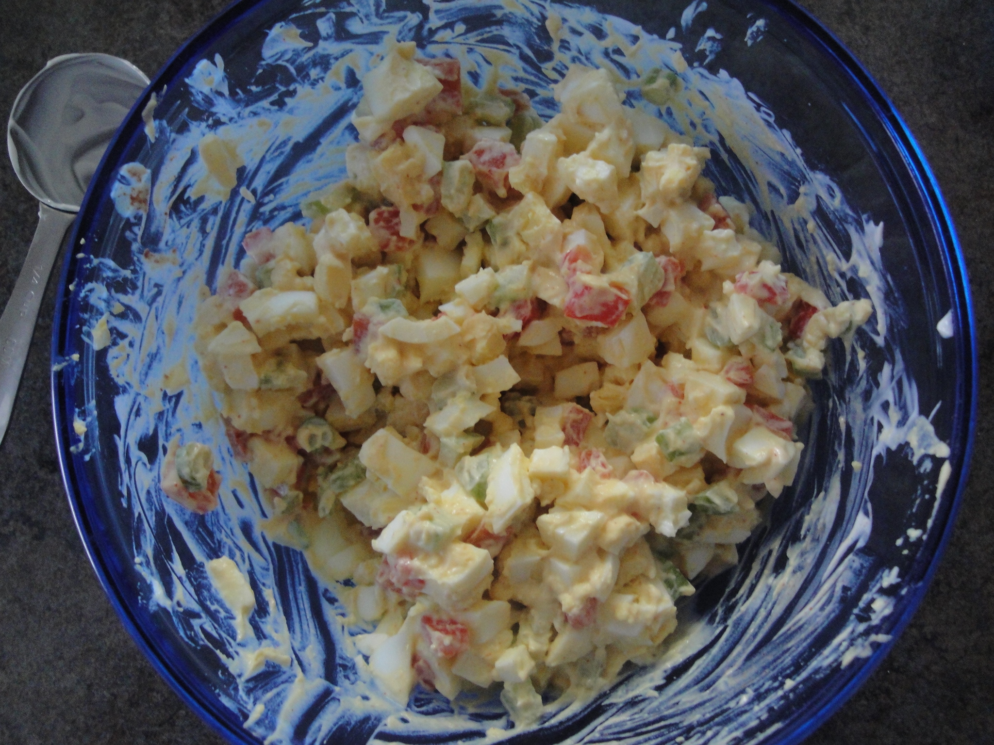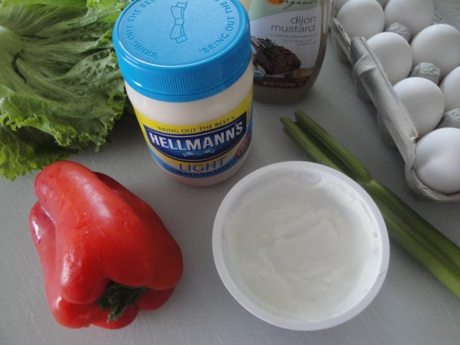 Nonfat plain Greek yogurt replaces most of the mayonnaise in this recipe, keeping it lighter in calories without sacrificing too much flavor. Keeping a little light mayonnaise in keeps the Greek yogurt from making the egg salad too tangy. I also added celery for crunch, roasted red pepper for an additional flavor boost and cayenne pepper for a little kick. Putting the salad in lettuce really keeps the calories down and, depending on the kind of lettuce you use, provides and additional crunch factor, making this a satisfying lunchtime bite. In additions, if you are watching your Weight Watchers points, one serving has 5 points so you can be on a diet and have egg salad too! See ya’, deli counter…I won’t be back for a while!