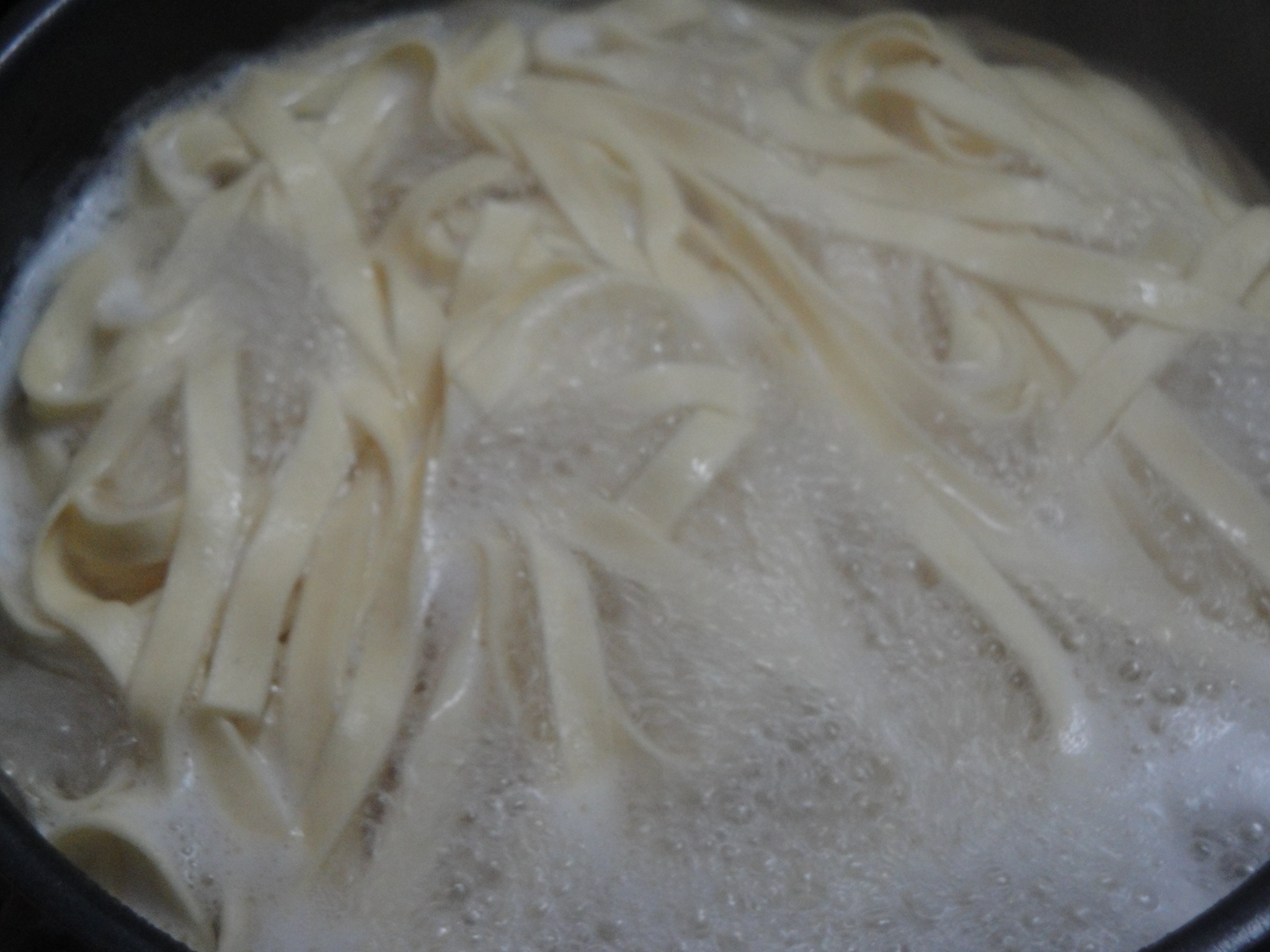 Cook the pasta according to package directions and drain, reserving 1/2 cup pasta water.