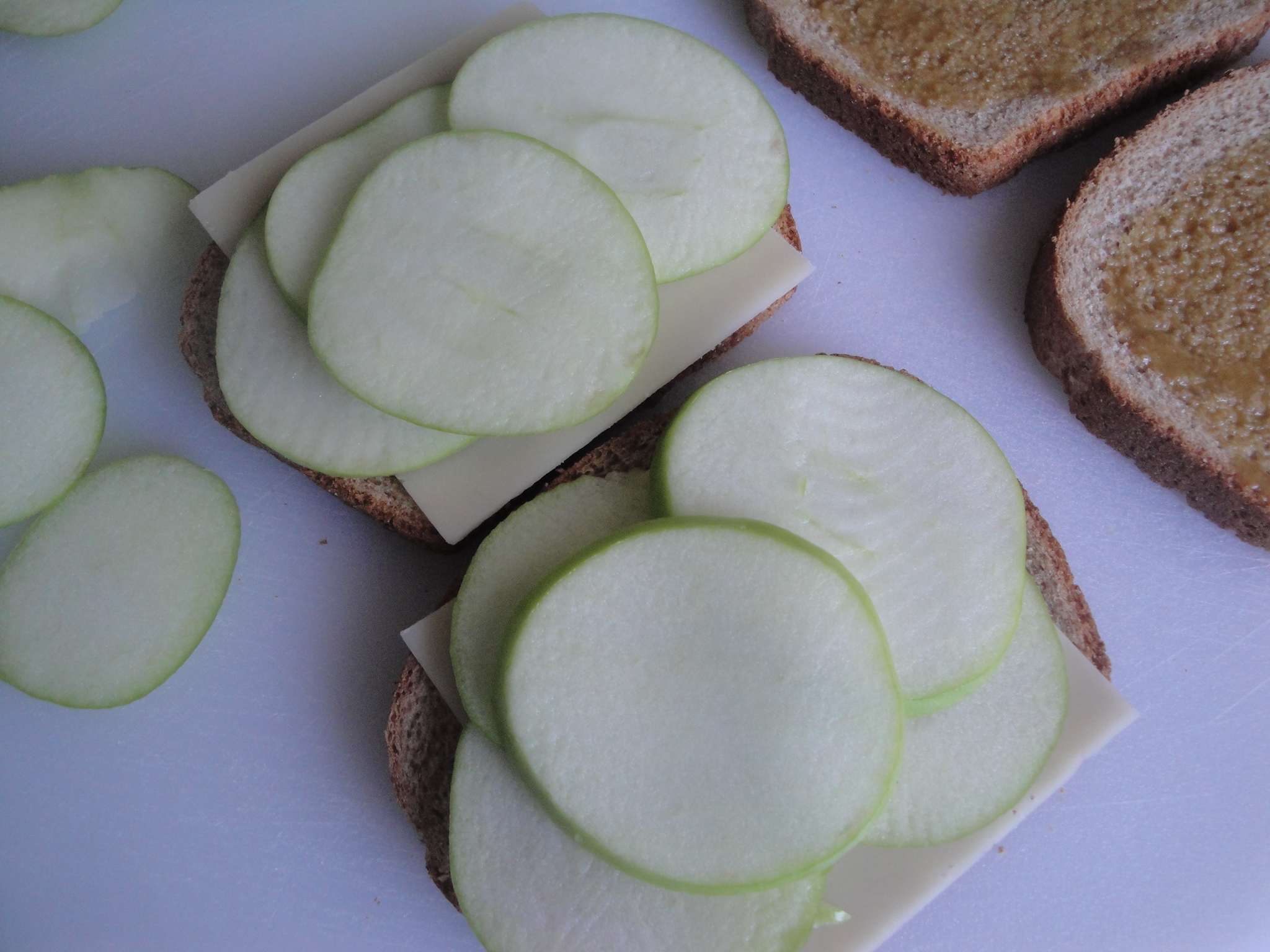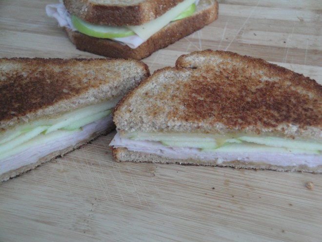 Sliced deli turkey is layered with thin slices of Granny Smith apple, lowfat Swiss cheese and homemade honey-Dijon before being toasted in a pan until crispy and golden brown. The apple provides a crunchy tartness while the cheese melts just enough to make each bite gooey. You might find yourself left with some turkey, a random apple you didn’t use for the stuffing and a little extra cheese from your cheesy mashed potatoes and realize you’ve got what it takes to make this sandwich. Even if it’s on a leftover dinner roll and all you have is yellow mustard, give it a try. By Friday, I’ll be making a rice-nut loaf-smashed potato-scalloped corn sandwich which won’t even come close to this one. But I bet you I’ll love it anyway. Have a great Thanksgiving!
