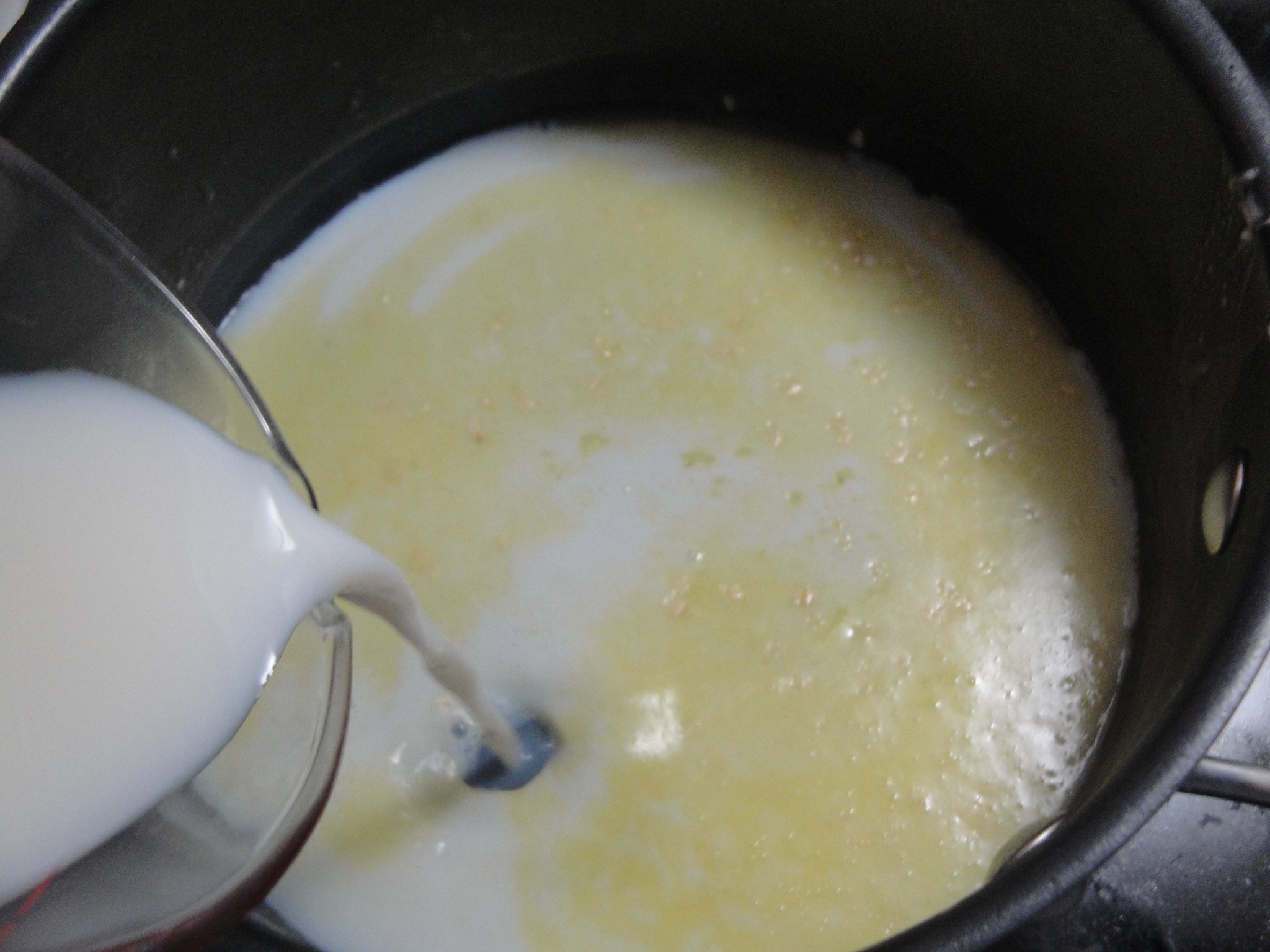 In a small saucepan, melt butter and add garlic; cook 1 minute or until golden, stirring.  Stir in milk and heat for 1 minute.  Remove  from heat; set aside.