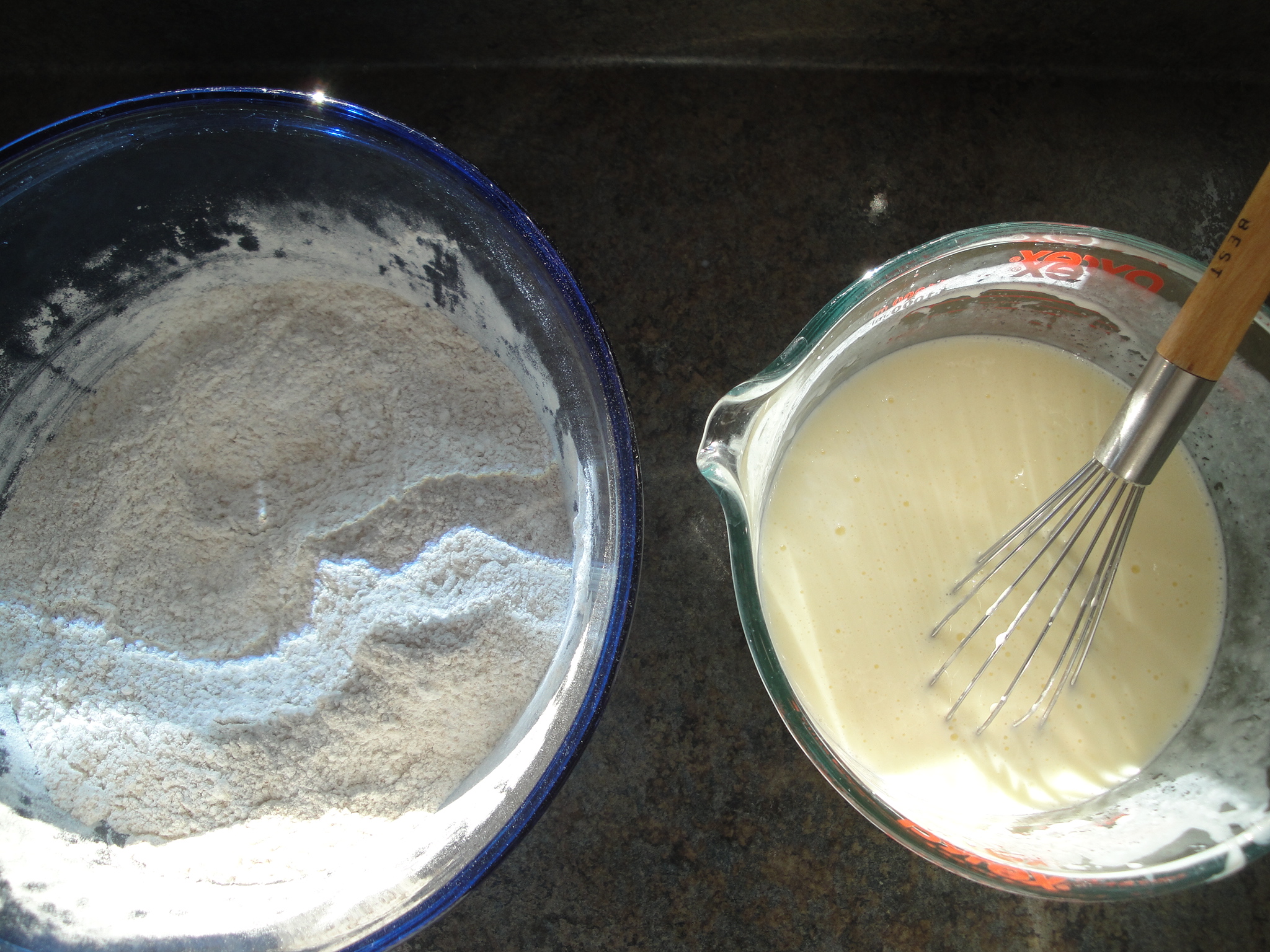 With equal parts whole-wheat and all-purpose flour, these pancakes are mixed together with low-fat buttermilk and eggs to become light and fluffy. These aren’t jazzy or exciting pancakes but with a little butter and syrup, these are the kind of pancakes that remind me of Sundays as a kid. They are perfect for a cozy weekend morning at home with the paper and hot cup of coffee. If you’re feeling nutty, add a dash of cinnamon to the batter or top it with fruit and powdered sugar. The nice thing about these simple pancakes are in fact their simplicity. And a great way to use up your leftover buttermilk.