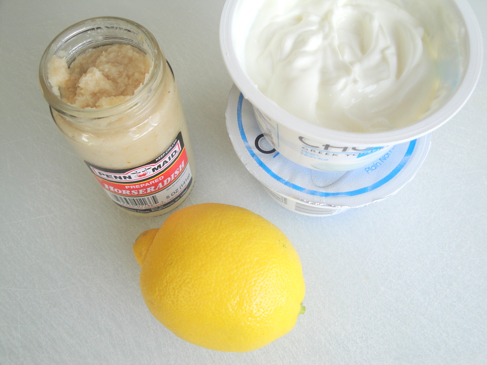 I keep forgetting how much I like horseradish. It’s one of those things that I eat and think Why haven’t I been eating this on my turkey sandwiches my whole life? But then I’ll go and have another turkey sandwich and still forget to pull out the horseradish. So when I had a friend coming over and nothing in the way of appetizers to prepare quickly, I was reminded of this good old standby. And since I usually have Greek yogurt and lemons in my refrigerator, this Lemon-Horseradish Dip pretty much could have made itself.