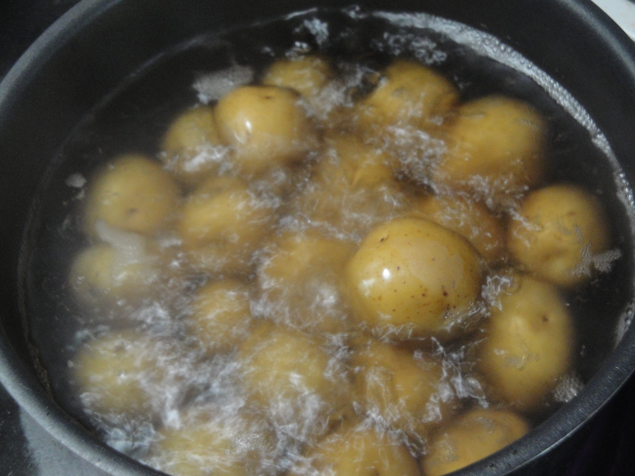 Place potatoes in a medium saucepan; cover with water. Bring to a boil. Cook 10 minutes or until tender; drain.
