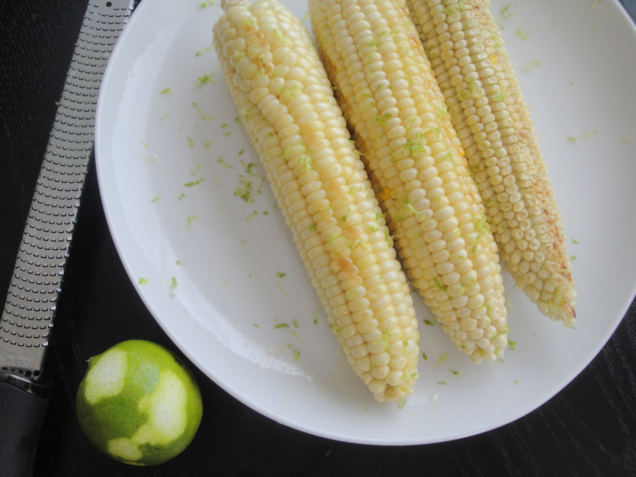 Fresh sweet corn is grilled until brown and tender before being brushed with a mixture of olive oil, butter and garlic. A light dusting of lime zest adds yet another fresh twist to these cobs. There are tons of ways to make your corn-on-the-cob but if you want something that isn’t too out of the ordinary and still celebrates corn’s summery sweetness, you’ll like this. The lime doesn’t overpower the corn but enhances it. A sprinkle of salt on top is just icing on the cob.