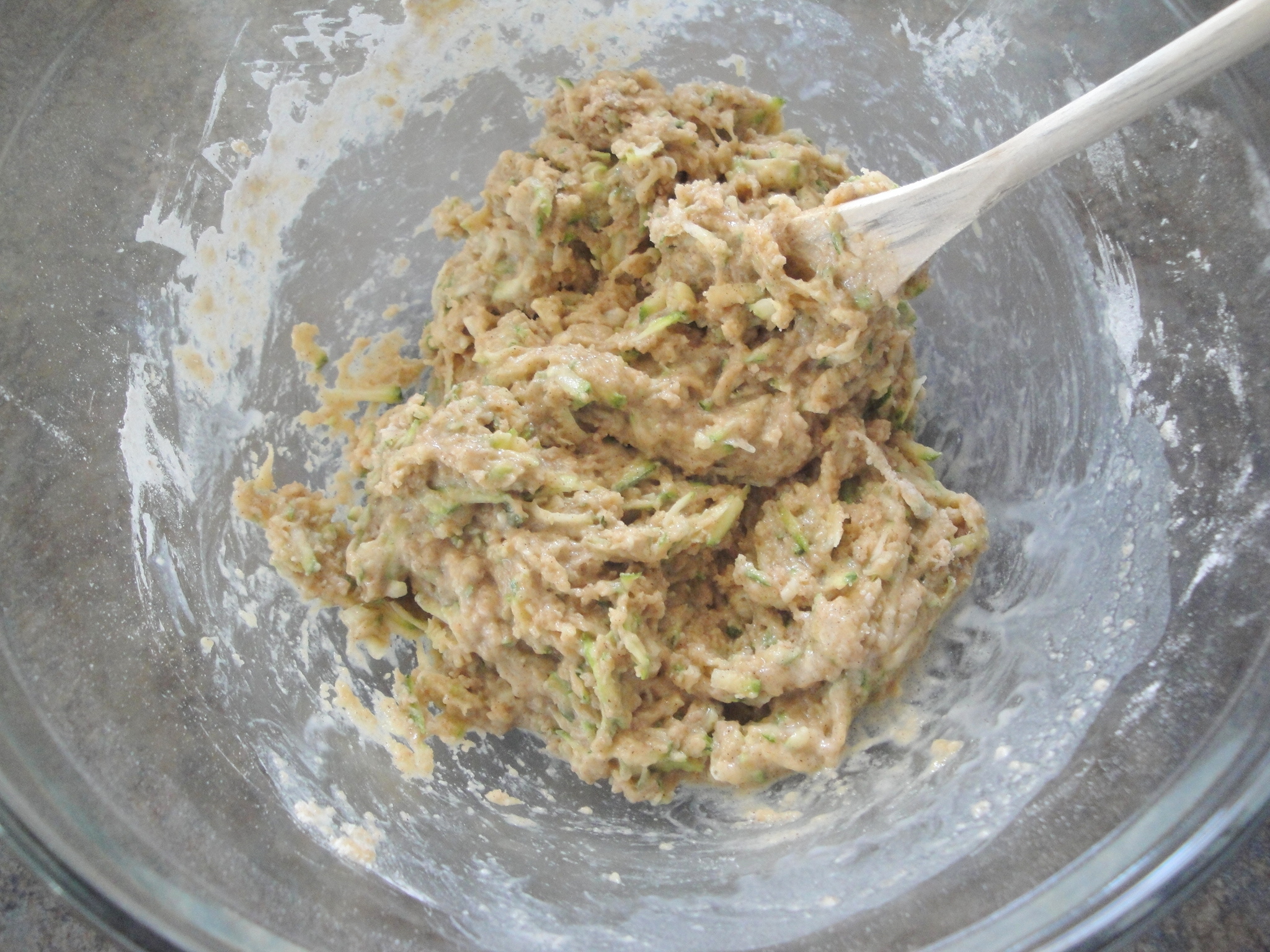 Add zucchini mixture to flour mixture, stirring batter just until combined.