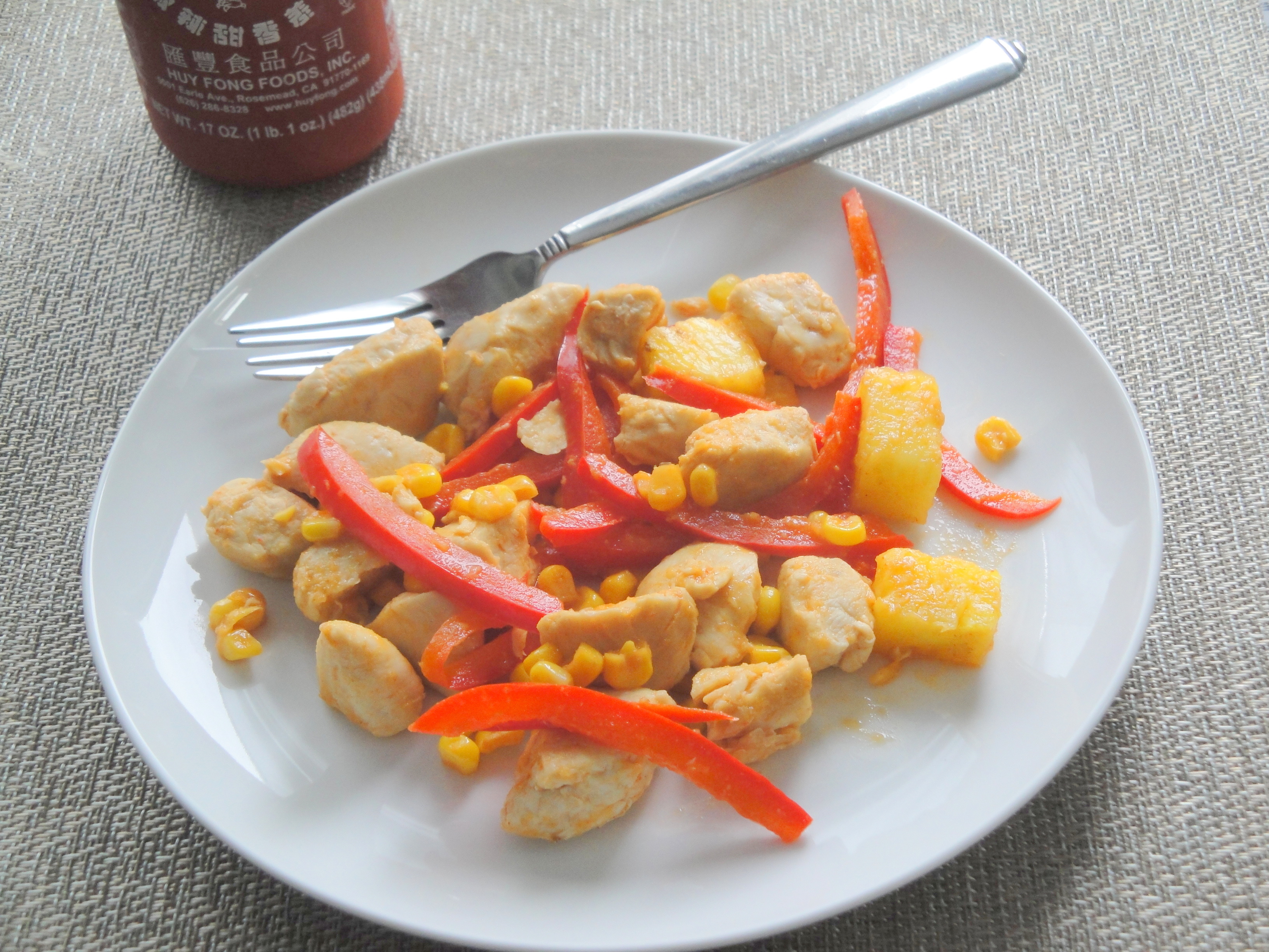 If you’ve read my blog for a little while, you might have noticed that I have thing for stir-fries. When I’m trying to eat healthy, my brain goes right to chicken and vegetables. And since sitting down with a plain plate of baked chicken and steamed veggies doesn’t really get my blood pumpin’, I’m more likely to chop everything up and turn it into some kind of stir-fry. The thing is: I’m pretty boring when it comes to stir-fries. If it were left to my creativity, I’d make chicken and broccoli stir-fry every time. But that is exactly why I have this blog and why I have so many recipes tucked away waiting to be made. This Chicken Stir-Fry with Corn, Pineapple and Red Pepper is exactly the type of stir-fry that never would have occurred to me to make on my own.