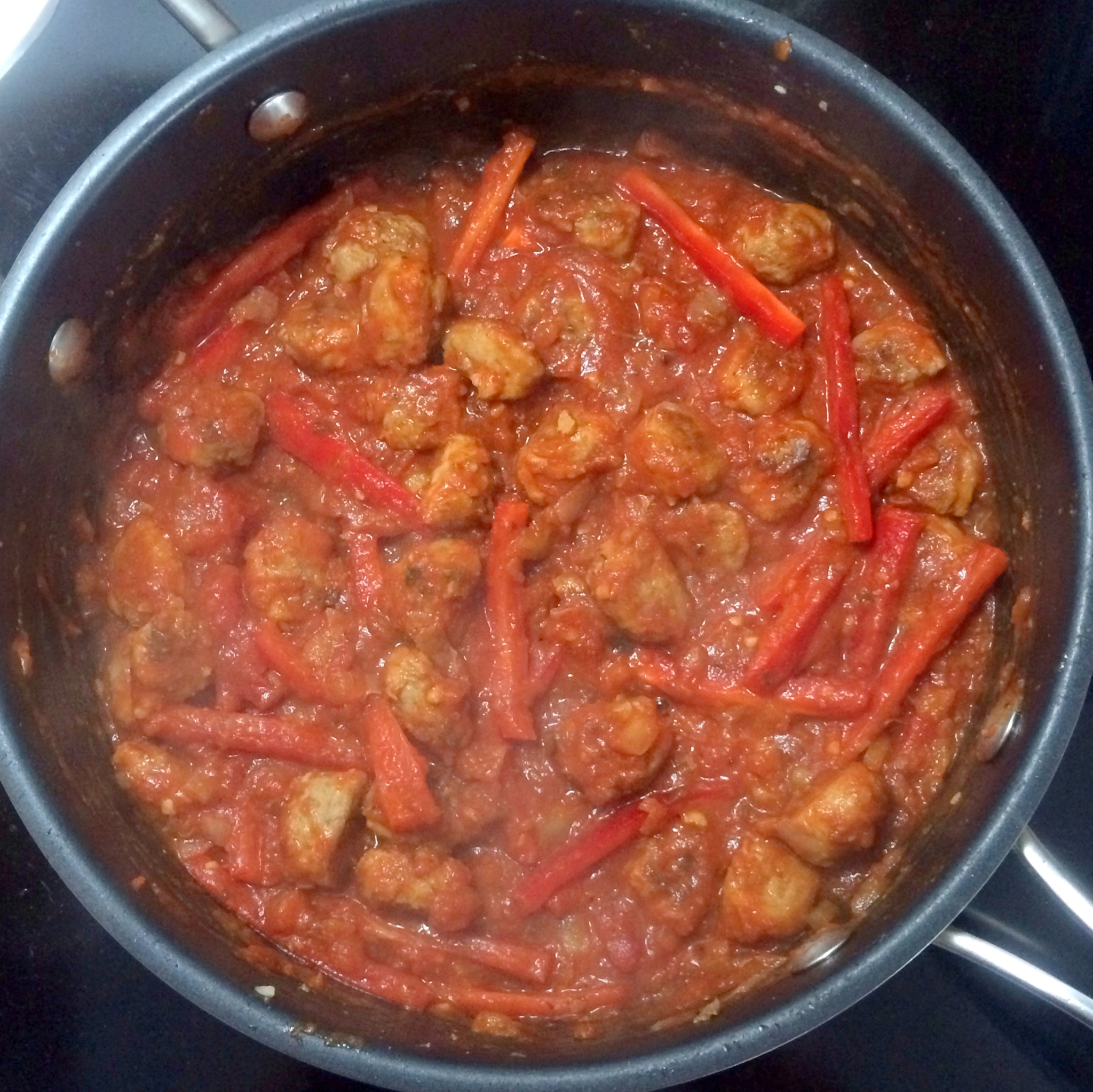 Heat a large skillet over medium-high heat. Add sausage to pan; cook 2 minutes or until lightly browned, stirring occasionally. Add onion and garlic; cook 1 minute. Add marinara, bell pepper, and black pepper; bring to a boil. Reduce heat, and simmer 6 minutes or until bell pepper is crisp-tender.