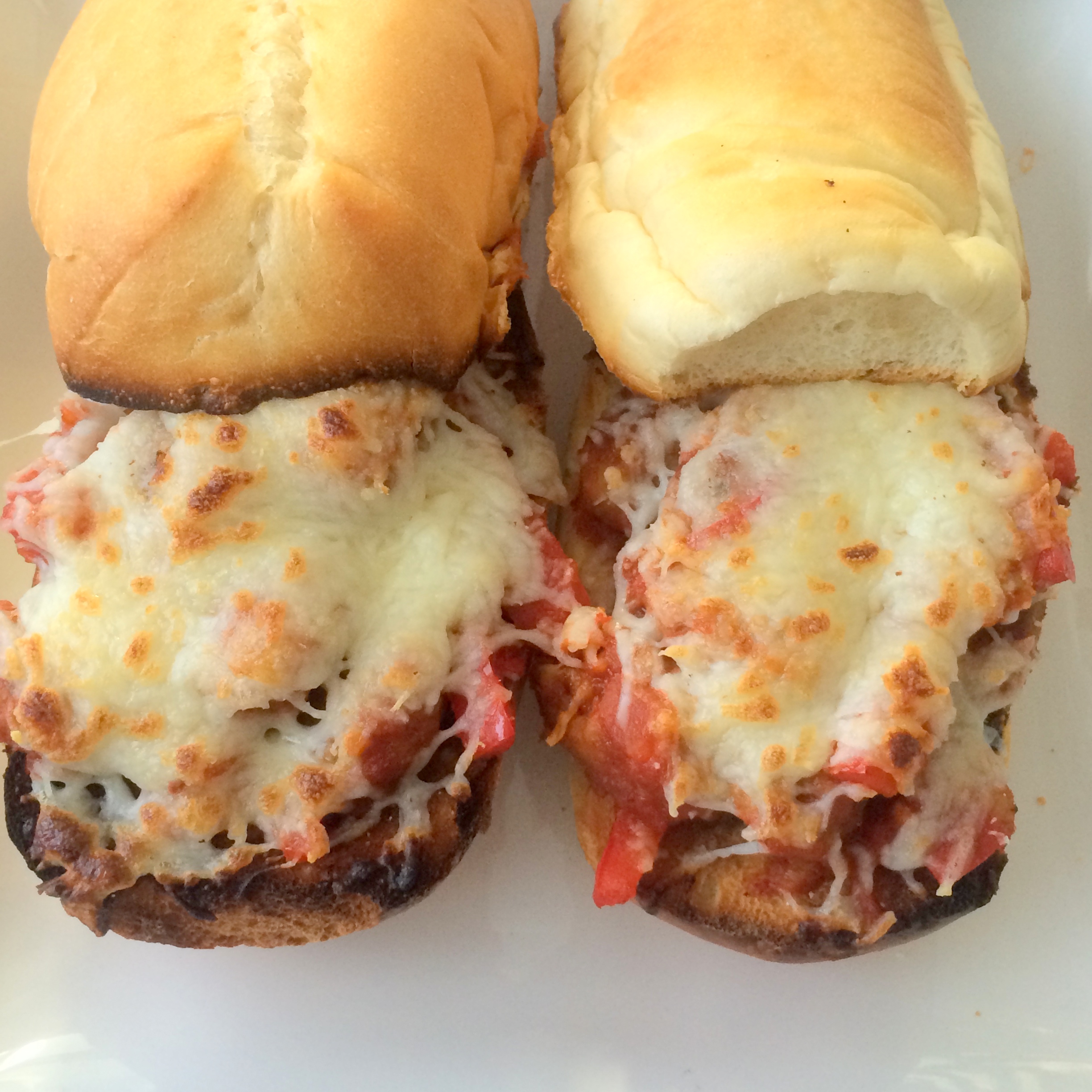 Sweet turkey sausage, red peppers, onions and marinara sauce are combined and piled into hollowed out toasted hoagie rolls. Shredded mozzarella cheese is added and the sandwiches are broiled until the cheese is melted and golden brown. It’s not often that I eat hoagies like this so this was a real treat for me. I even ate my leftovers as open-faced sandwiches which I liked even better. These sandwiches are so easy to make, healthier than your typical sausage hoagie, and perfect for a tailgate or game.