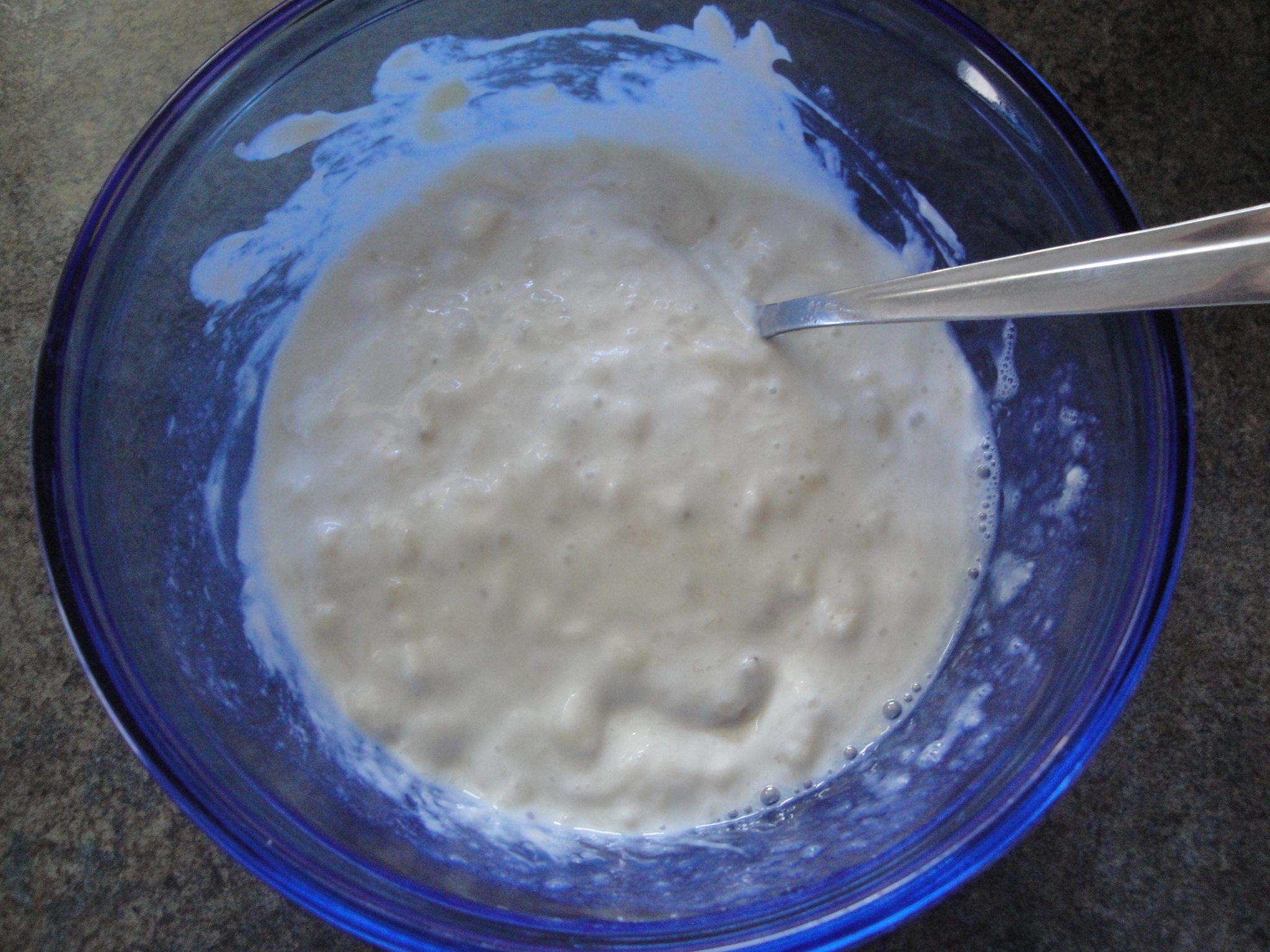 Combine mashed bananas, milk, and yogurt in a small bowl and set aside.