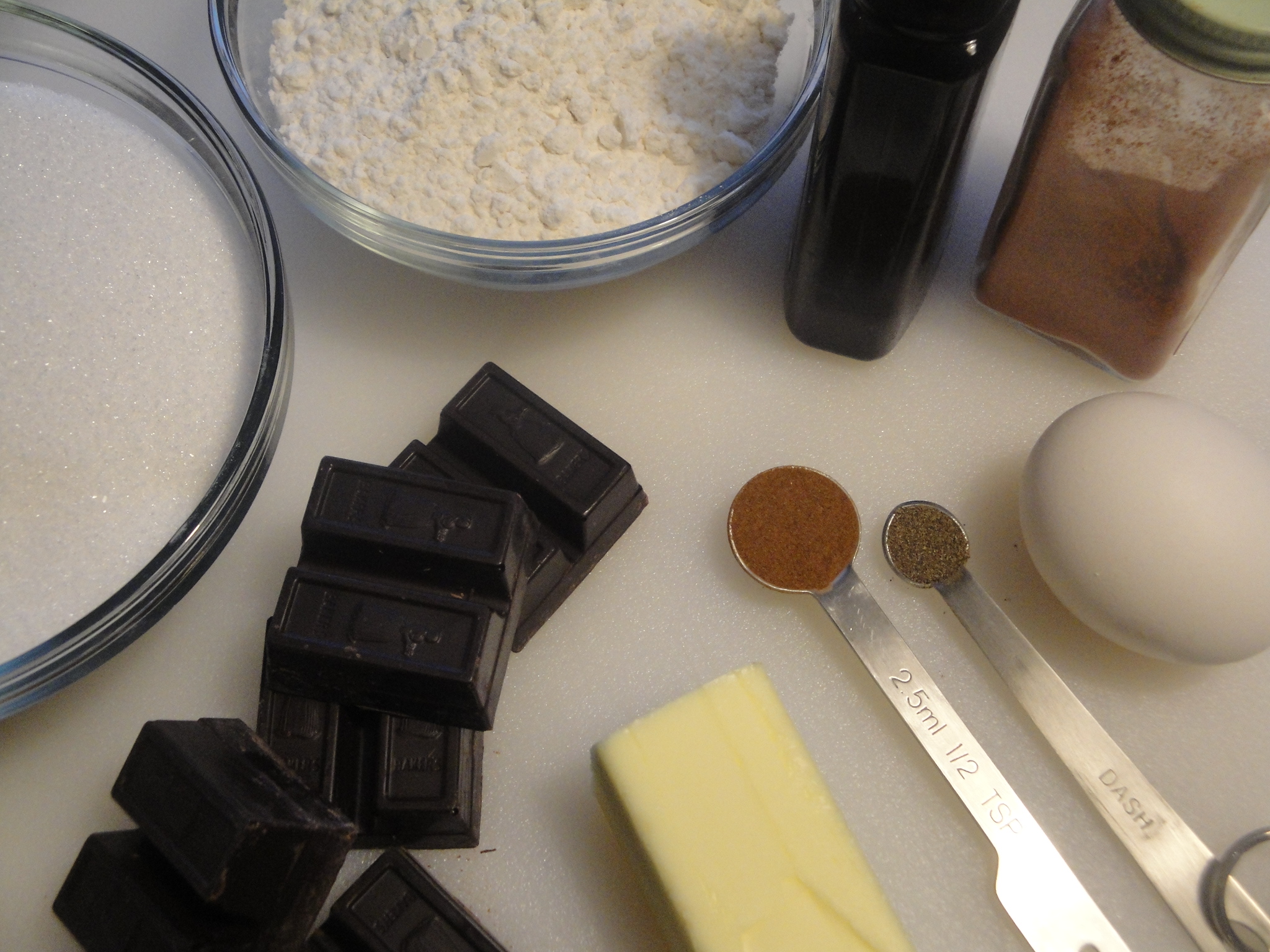 I love the idea of adding a bit of a kick to something sweet. These Mexican Chocolate Cookies do just that by adding cinnamon, cayenne pepper and black pepper. The spices don’t take away from the sweetness at all. In fact, these cookies are sweet, chocolatey, chewy and delicious. The hint of both peppers kicks in softly at the end and complements the bittersweet chocolate well. The recipe says to bake them for 10 minutes so even though they won’t look done, take them out anyway. I left mine on the cookie sheet on a wire rack to cool for five minutes and they were perfectly done. Even after two days, they were still soft and chewy so resist the temptation to leave them in the oven a few minutes longer (unless you want them crunchier). Trust me, you’ll be happy with them!