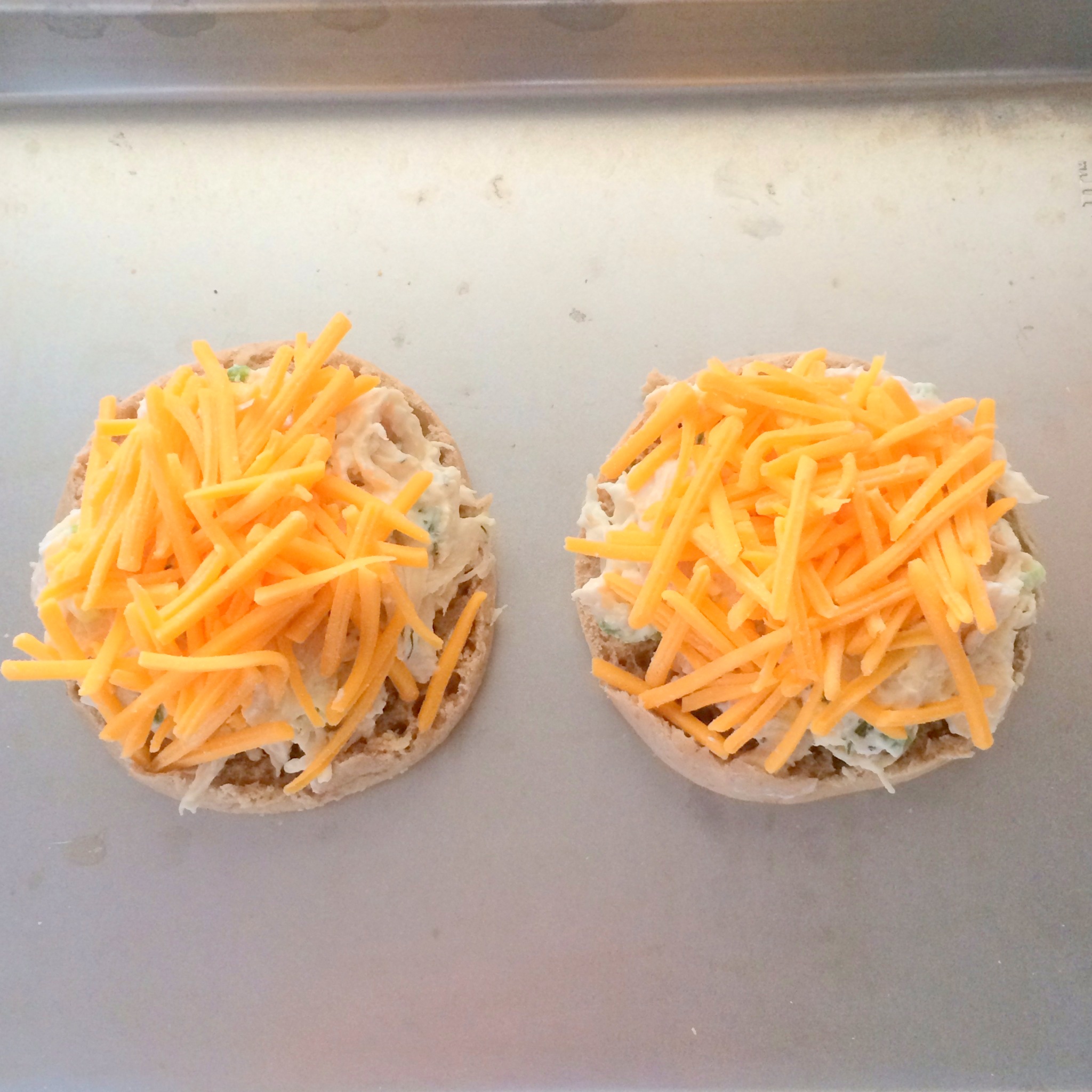 Place 1/3 cup chicken mixture on bottom half of each muffin. Top evenly with cheese. Broil 1 minute or until cheese melts.