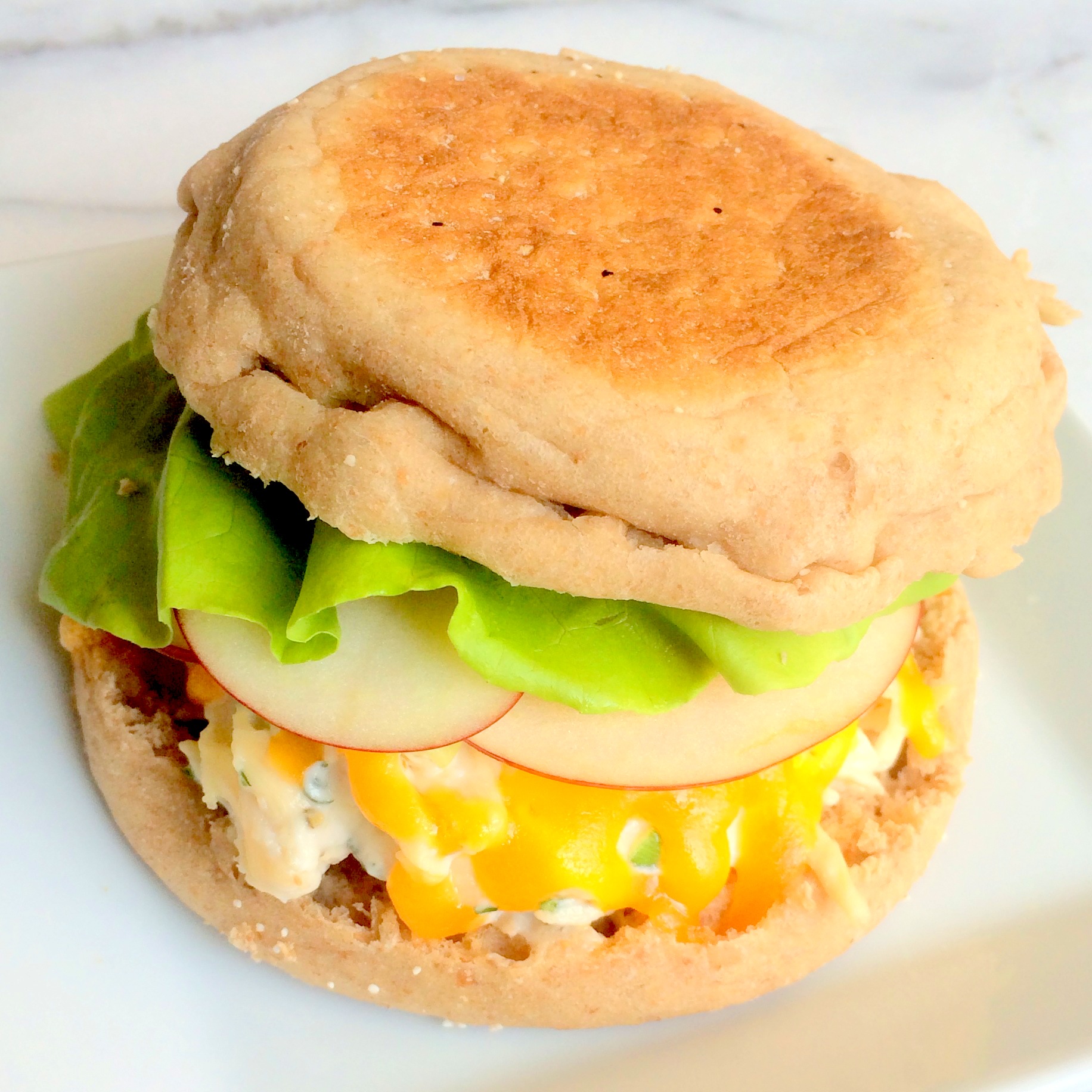 Precooked rotisserie chicken (a busy girl’s lifesaver) is mixed with fat-free Greek yogurt, mayonnaise, dill, and scallions. The mixture is covered in cheddar cheese and broiled until melted and gooey. Thin slices of fresh apple and leaves of Bibb lettuce round out this little sandwich which can be easily made ahead of time and wrapped up to-go (just heat up the cheese in a microwave or leave it off completely). I have to admit, I’m not the biggest fan of using Greek yogurt in chicken salad but if there is a nice balance with some light mayonnaise, it can actually provide a nice little tang that you wouldn’t normally get. Give these a try. I mean, it beats yet another boring can of soup or unsatisfying frozen meal!