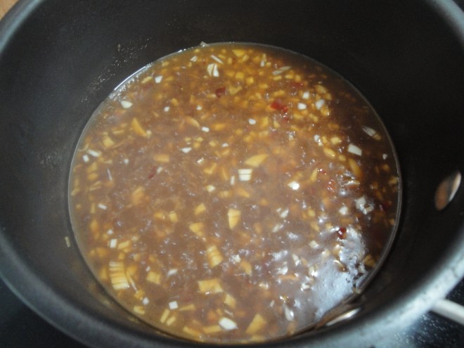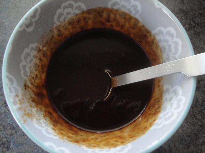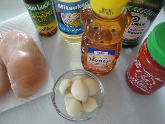 Combine vinegar, soy sauce, honey, sesame oil, chile paste, and garlic, stirring until honey dissolves.