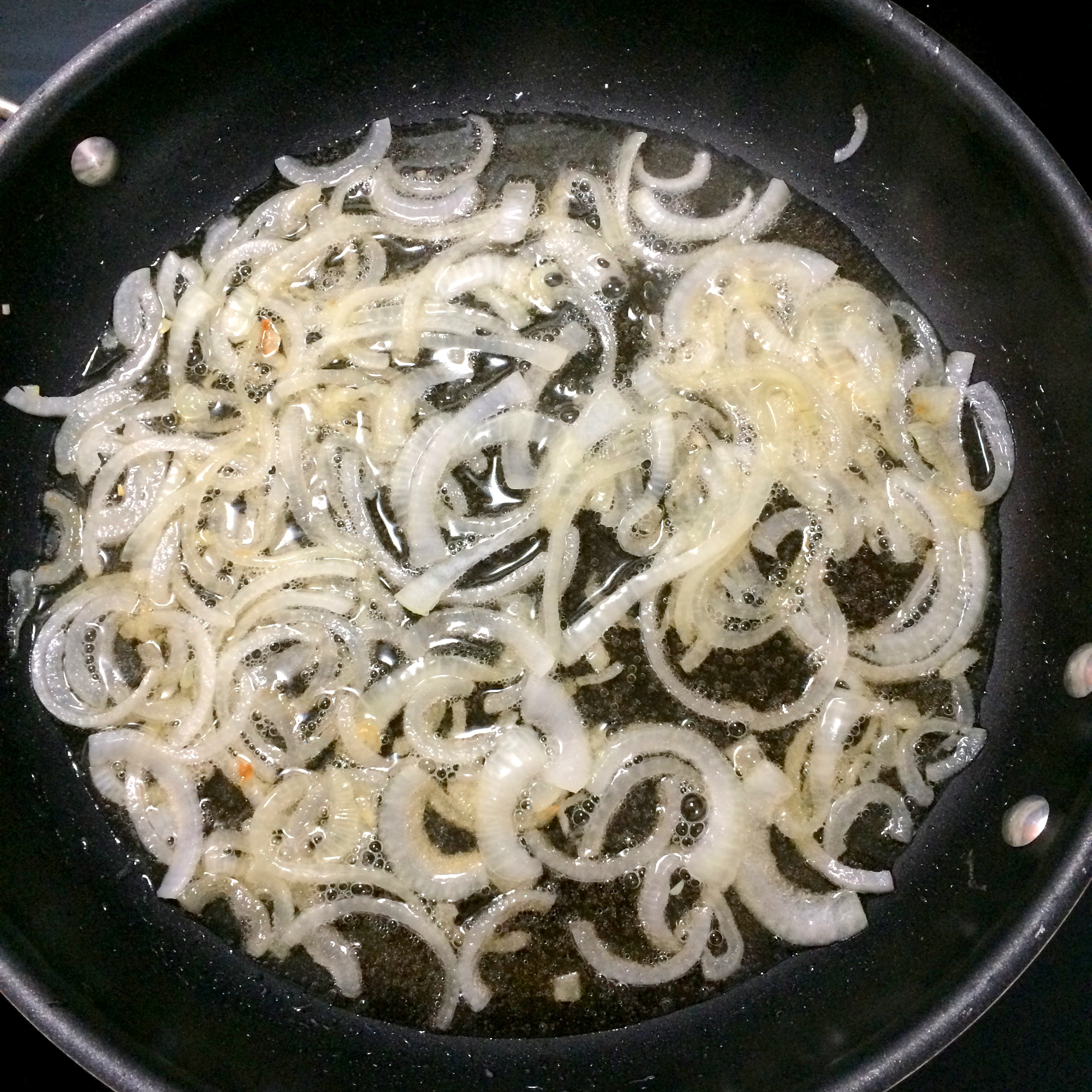 Heat a large skillet over medium heat. Add oil; swirl. Add onion; cook 7 minutes or until tender, stirring occasionally. Add beer; bring to a boil over medium-high heat. Reduce heat. Simmer 20 minutes or until onion is golden and liquid almost evaporates; stir occasionally. Cool.