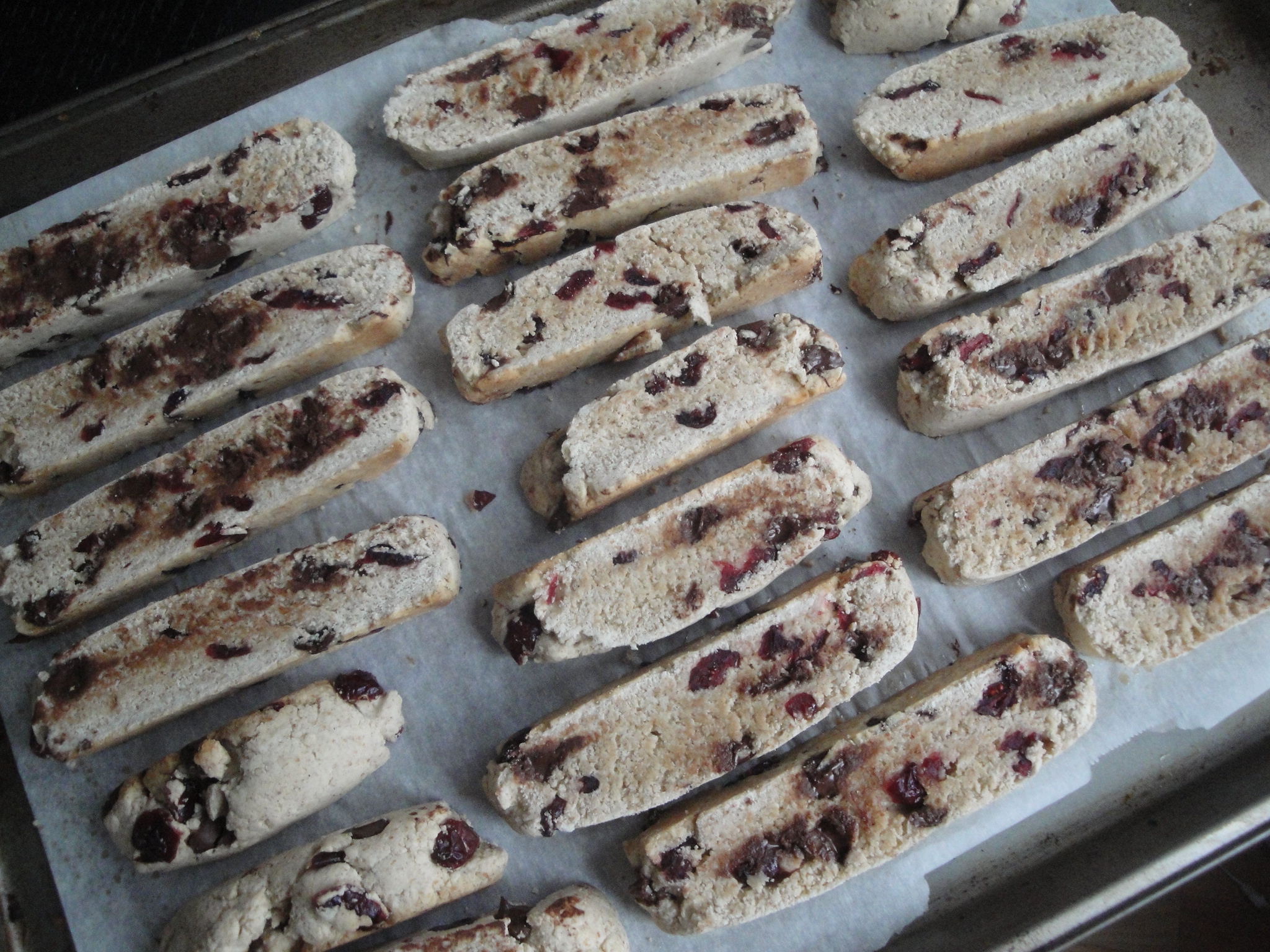 Stir in 1 cup semisweet chocolate morsels and dried sweetened cherries.