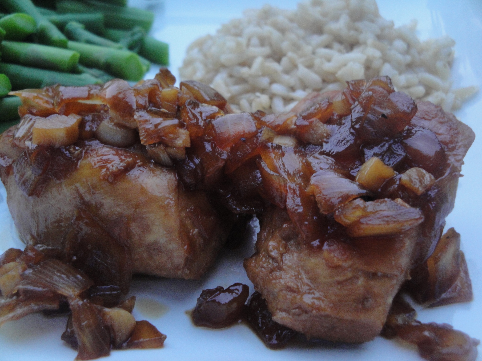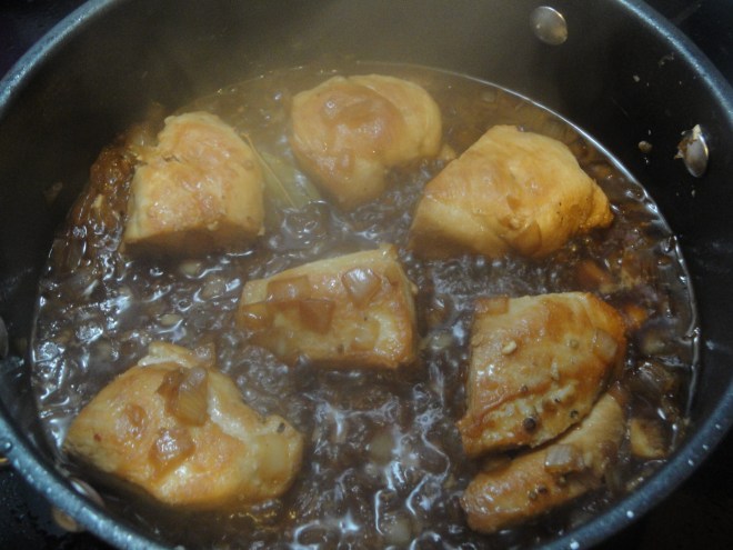 Yes, this is yet another chicken recipe. As I mentioned before, I used to be a vegetarian (13 years!) and now I eat poultry and some fish but still no pork or beef. Therefore, you will see a LOT of chicken recipes here. That being said, Adobo Chicken is another one. I was happy to make this recipe because I actually had all of the ingredients on hand and didn’t need to run to the store. But…I didn’t love it. It wasn’t bad, but it reminded me of something that I used to eat as a kid that I didn’t like (the only thing that pops in my head is liver and onions – yuck!). This sauce was okay and the onions actually added a little something to the chicken but unfortunately I doubt I’ll make this one again.