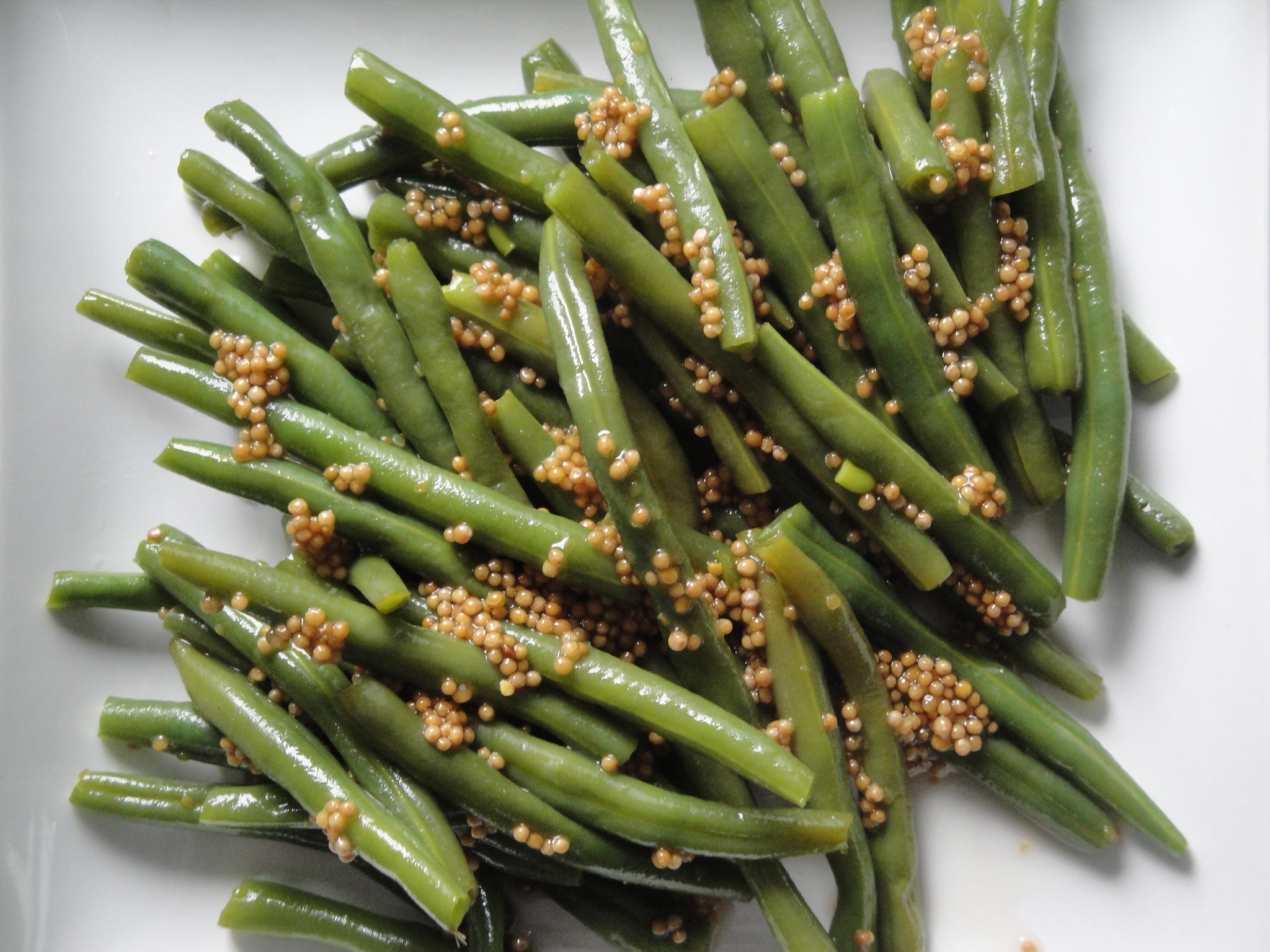 I love the produce section at the store in the summer because seeing bin after bin of $0.25 summer fruit and vegetables gets me slightly giddy. And even better, the produce is usually locally grown. I live in New Jersey, just outside of Philadelphia, and in the summers, markets and farm stands go crazy with tons of locally grown produce that you just can’t beat. Signs everywhere scream “Jersey Tomatoes!” or “Jersey Corn!” I bypassed both of these this weekend and instead headed for some locally grown green beans which I scooped up by the handful. I didn’t really have anything particular in mind when I bought these so I can home, scanned my recipes and made Green Beans with Honey-Mustard Glaze.